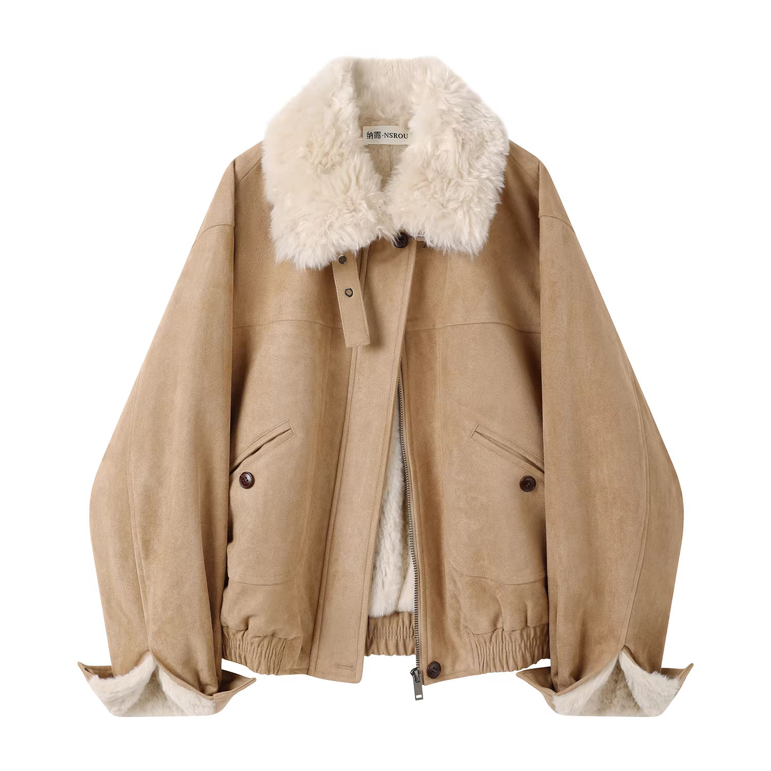 - Áo khoác ngắn da lộn cổ điển Melard, áo khoác cotton nữ mùa đông kiểu mới, áo khoác da có lót lông cừu, cổ lông, kiểu biker