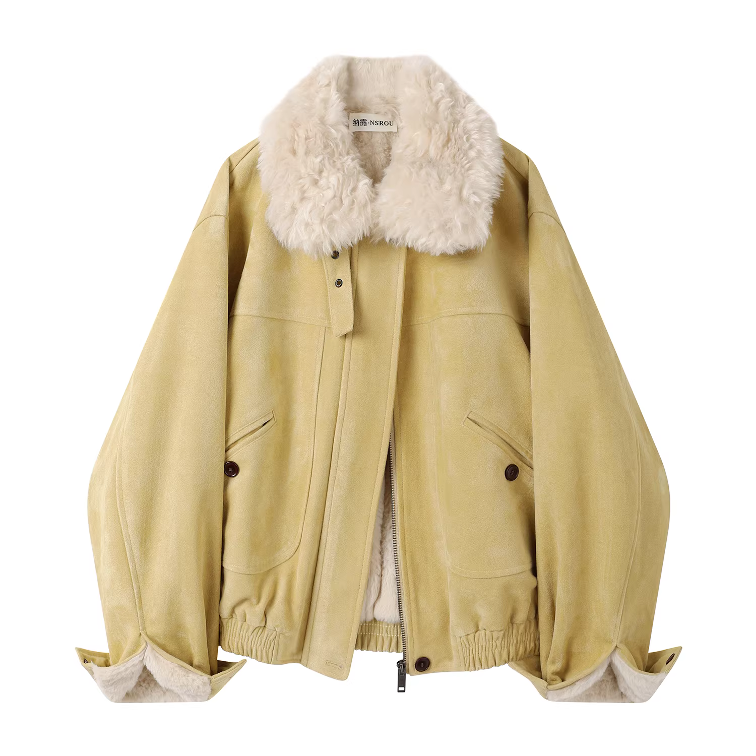 Áo khoác ngắn da lộn cổ điển Melard, áo khoác cotton nữ mùa đông kiểu mới, áo khoác da có lót lông cừu, cổ lông, kiểu biker