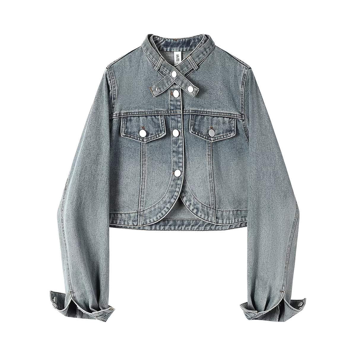 - Áo khoác ngắn denim thiết kế cổ điển theo phong cách Hồng Kông dành cho nữ, áo dài tay thời trang mới mùa xuân hè