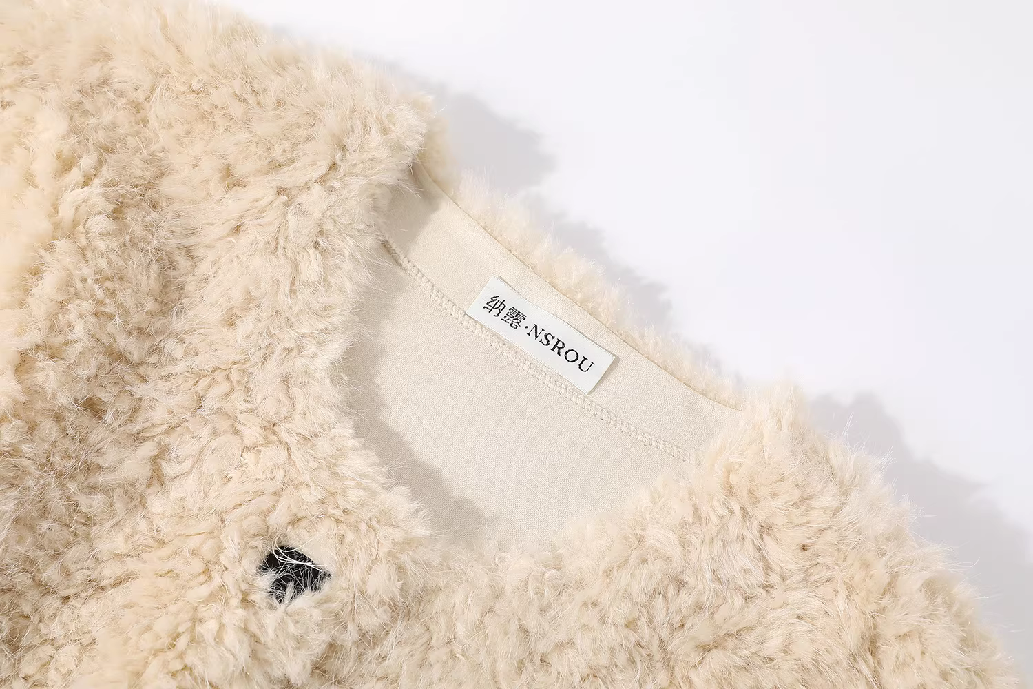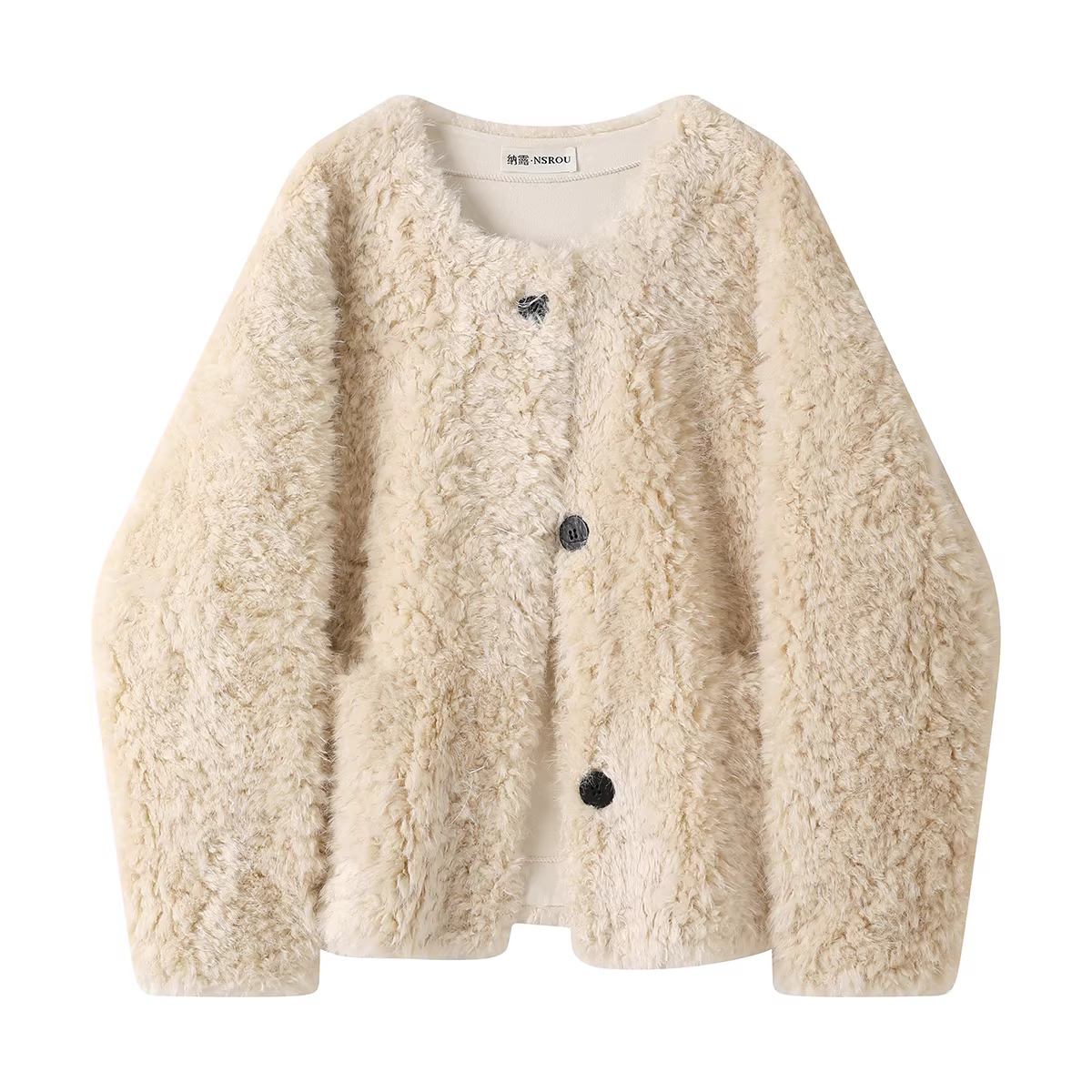 Áo khoác ngắn len cừu phong cách Chanel màu hồng nhạt của NSROU dành cho nữ, áo lông kiểu mèo mùa thu đông
