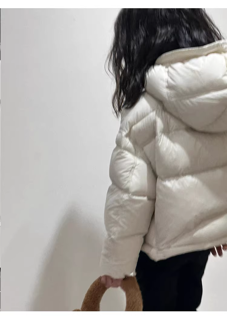 Áo khoác ngắn màu trắng phong cách Hàn Quốc dành cho nữ mùa đông kiểu mới có mũ trùm đầu dày dặn ấm áp dành cho các cô gái lớn tuổi