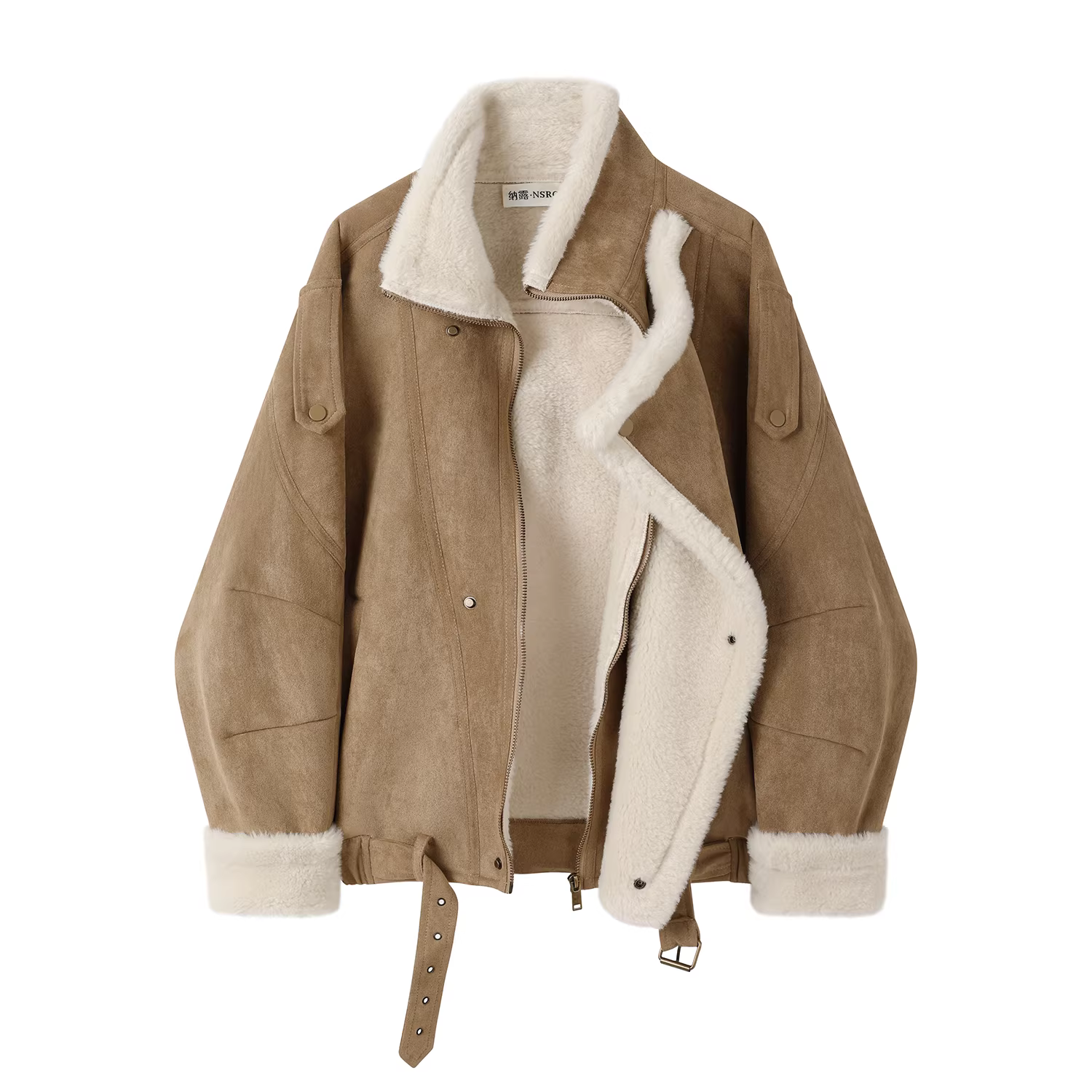 - Áo khoác ngắn tích hợp len và lông cừu phong cách giản dị dành cho nữ, mùa đông, áo khoác biker độc đáo và siêu phong cách.