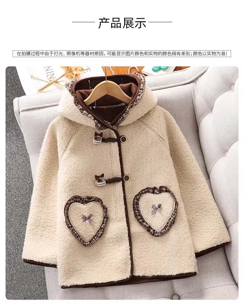 - Áo khoác ngoài nữ bé gái thu đông 2025 kiểu mới, áo khoác len dày giữ ấm cho bé gái, quần áo trẻ em, áo len có mũ trùm đầu kiểu giản dị