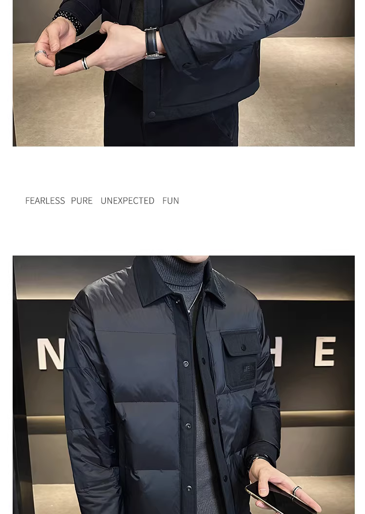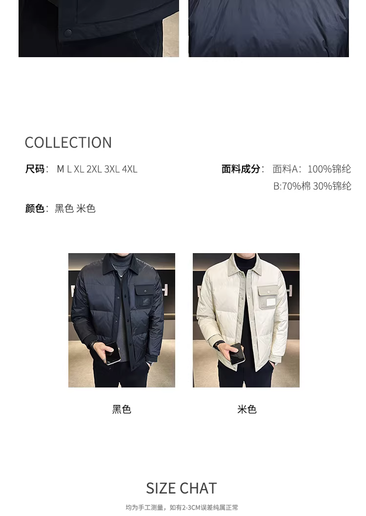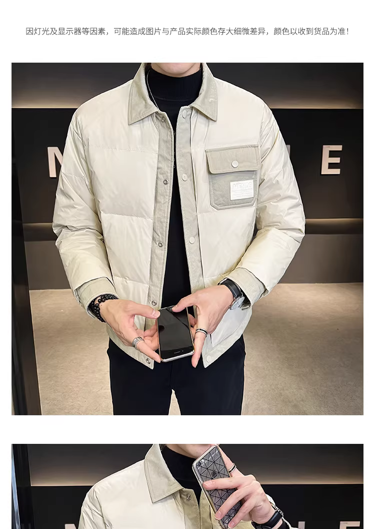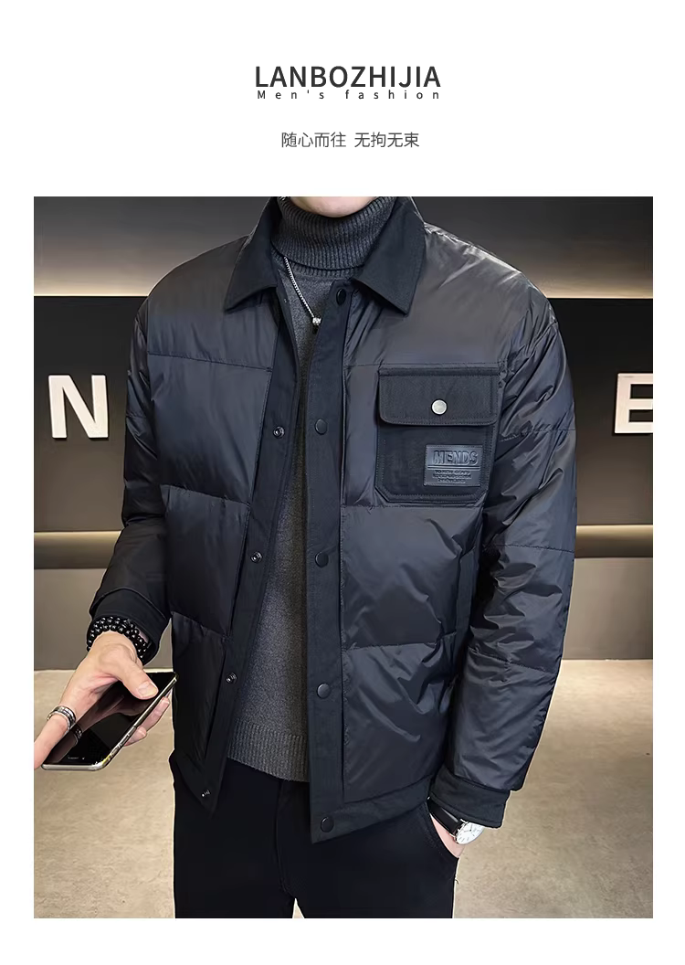 - Áo khoác nhẹ cổ sơ mi cao cấp dành cho nam, mùa đông 2024, kiểu dáng thời trang mới, phong cách giản dị, ngắn gọn, lịch lãm