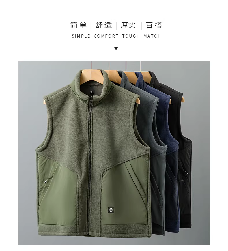 - Áo khoác nỉ nam hai mặt cho mùa đông, áo khoác ngoài không tay cổ đứng ấm áp