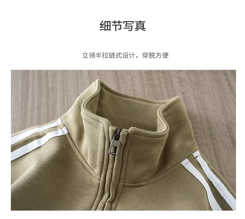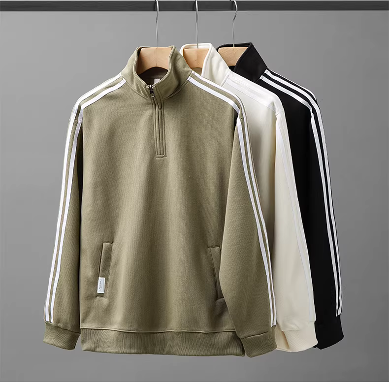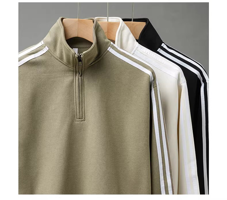 - Áo khoác nỉ nửa khóa kéo nam 320G, kiểu dáng Mỹ mới mùa thu đông 2024, dáng rộng, phối sọc, cổ đứng