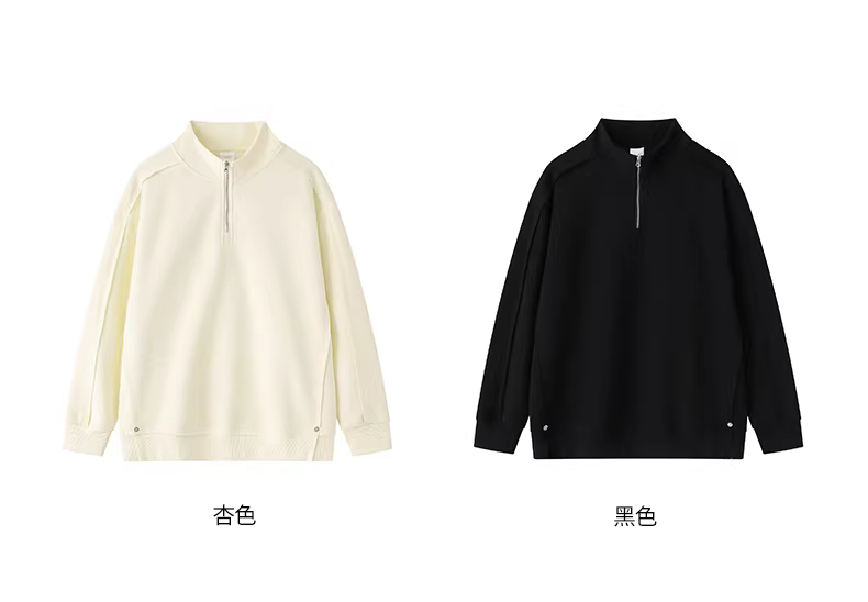 Áo khoác nỉ nửa khóa kéo nam, kiểu mới thu đông 2025, phong cách Mỹ, phối vải, dáng rộng, màu trơn, cổ đứng.
