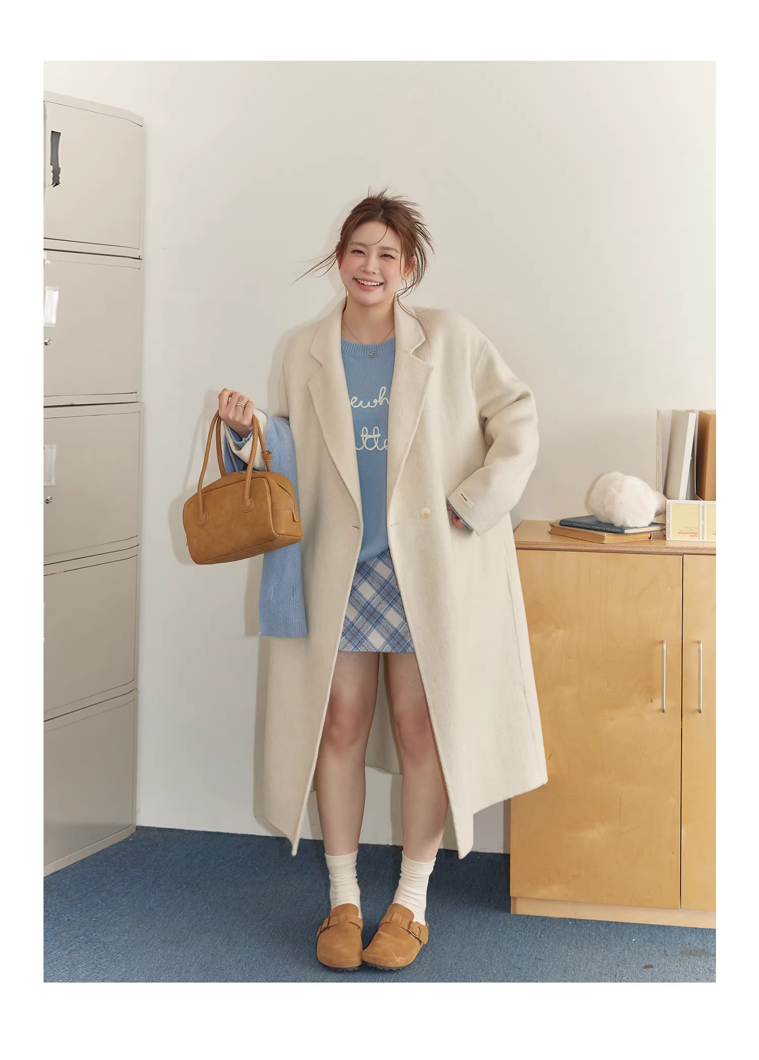 Áo khoác nữ cỡ lớn dành cho người lớn, mùa thu đông, cao cấp, ấm áp, dày dặn, áo khoác len hai mặt, kiểu dáng mới.
