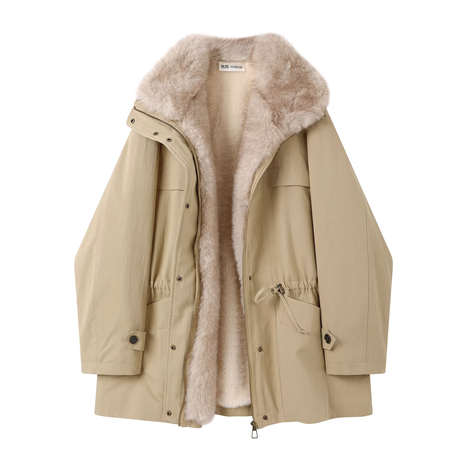 - Áo khoác parka cổ lông đa năng kiểu dáng rộng theo phong cách cổ điển của Mỹ dành cho nữ, áo khoác cotton dài vừa phải lót lông cừu mùa đông.