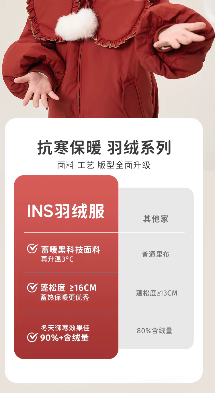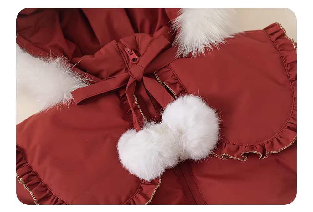 Áo khoác phao bé gái kiểu mới 2024, áo khoác phao mùa đông cho bé gái, tay đèn lồng màu đỏ, trang phục Tết thời trang