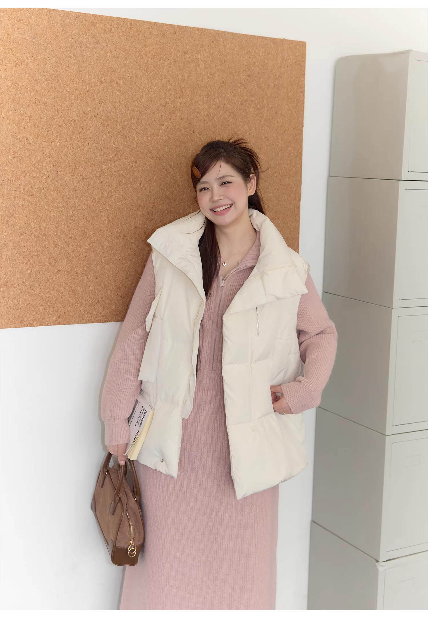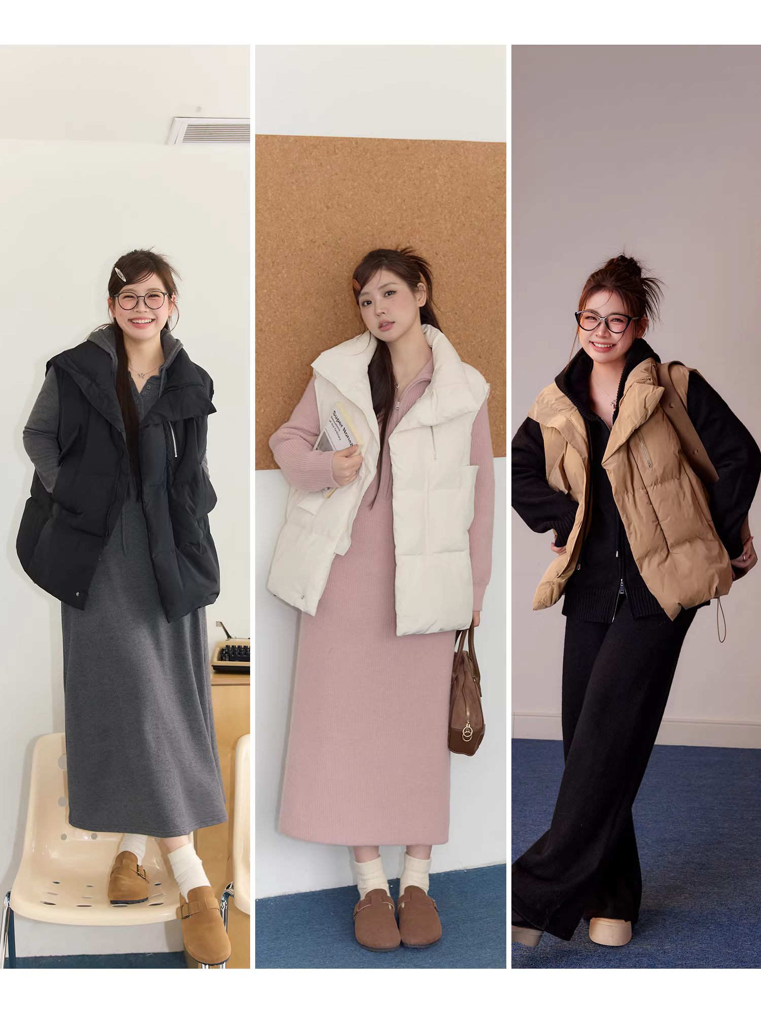 - Áo khoác phao cổ cao màu trắng phổ biến của Zhang Daren dành cho nữ mùa thu đông 2025, áo phao ngắn màu đen.