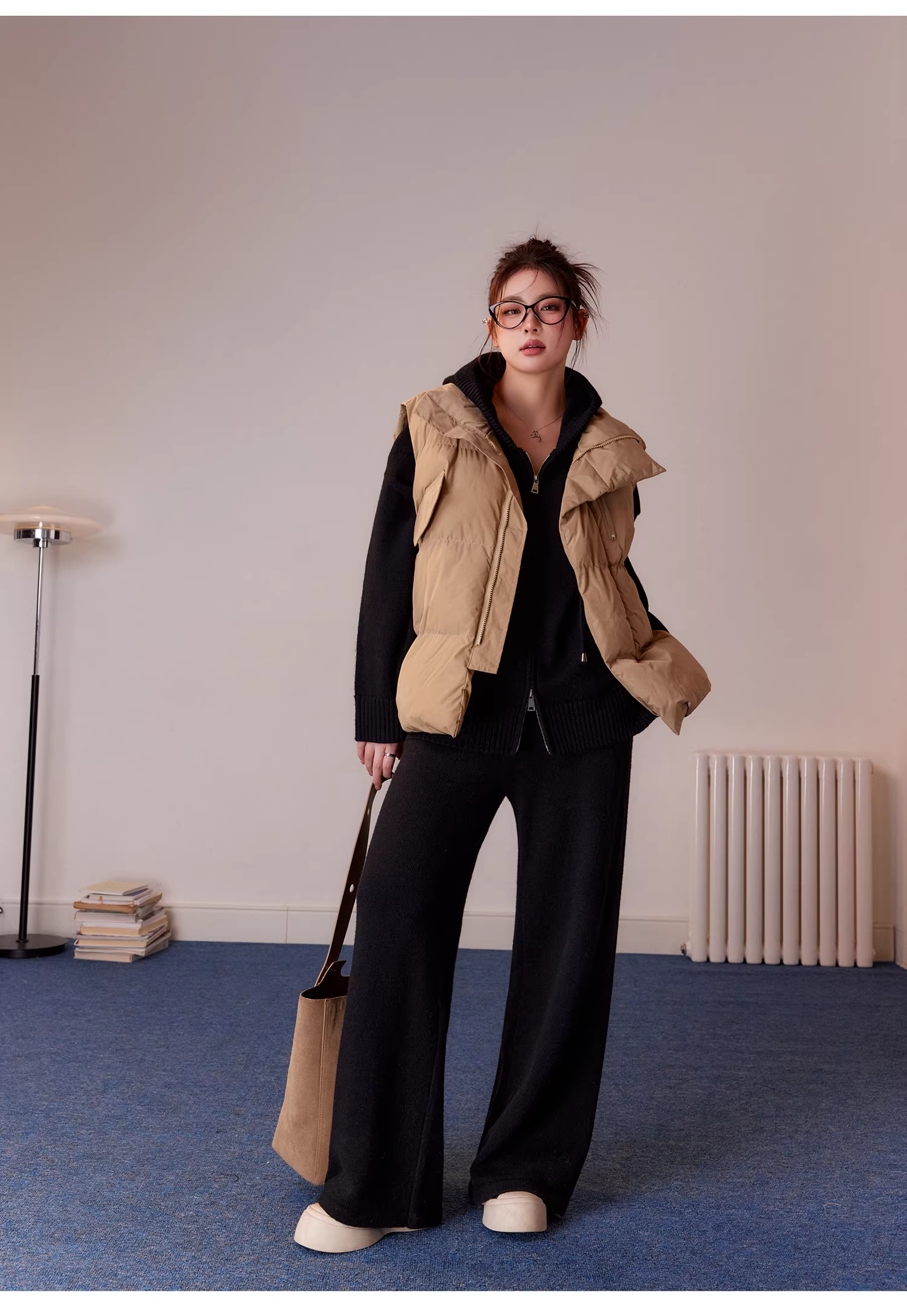 Áo khoác phao cổ cao màu trắng phổ biến của Zhang Daren dành cho nữ mùa thu đông 2025, áo phao ngắn màu đen.