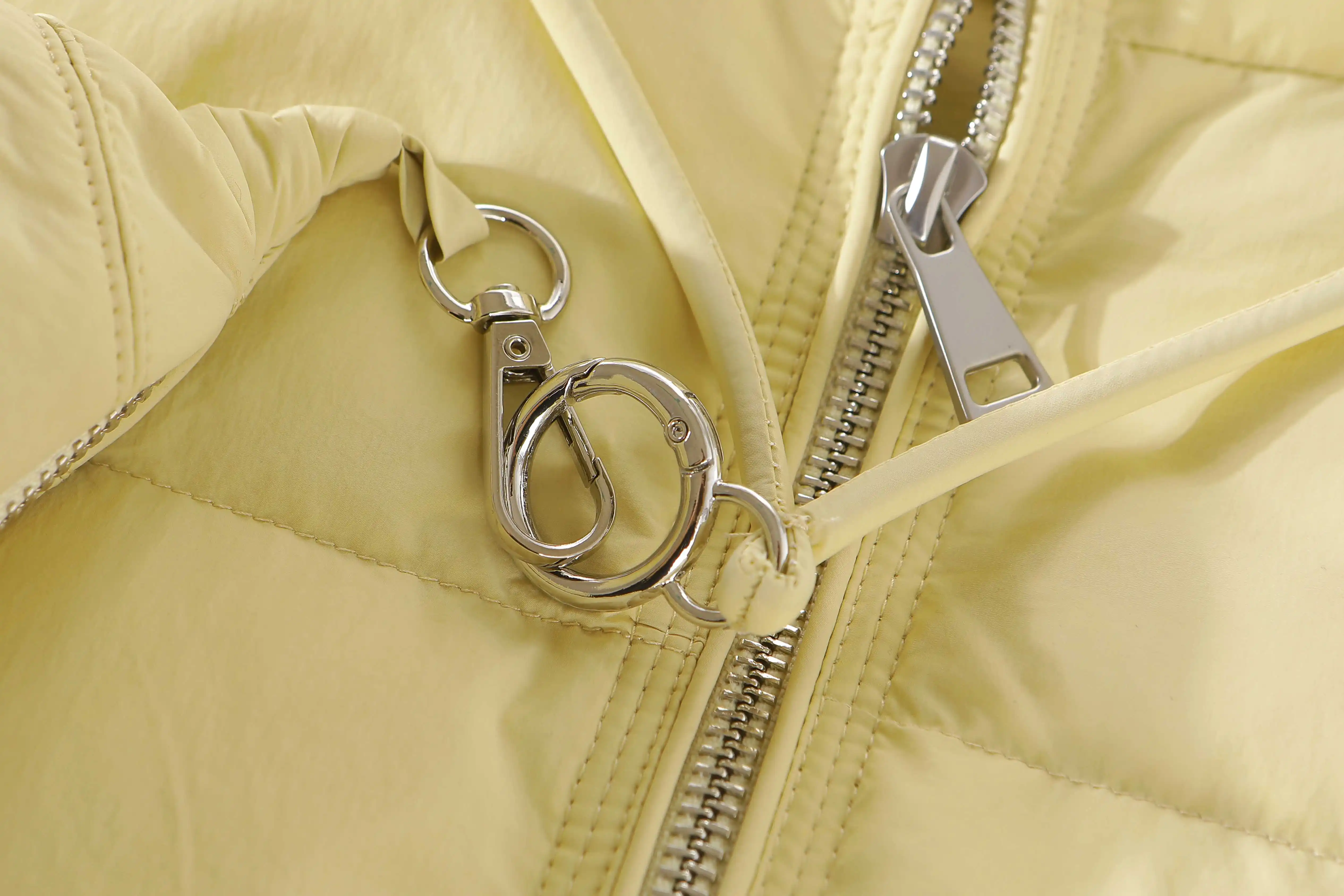 - Áo khoác phao cổ đứng kiểu Hàn Quốc màu vàng trắng có khóa kéo dành cho nữ mùa đông, áo khoác phao ấm áp thường ngày