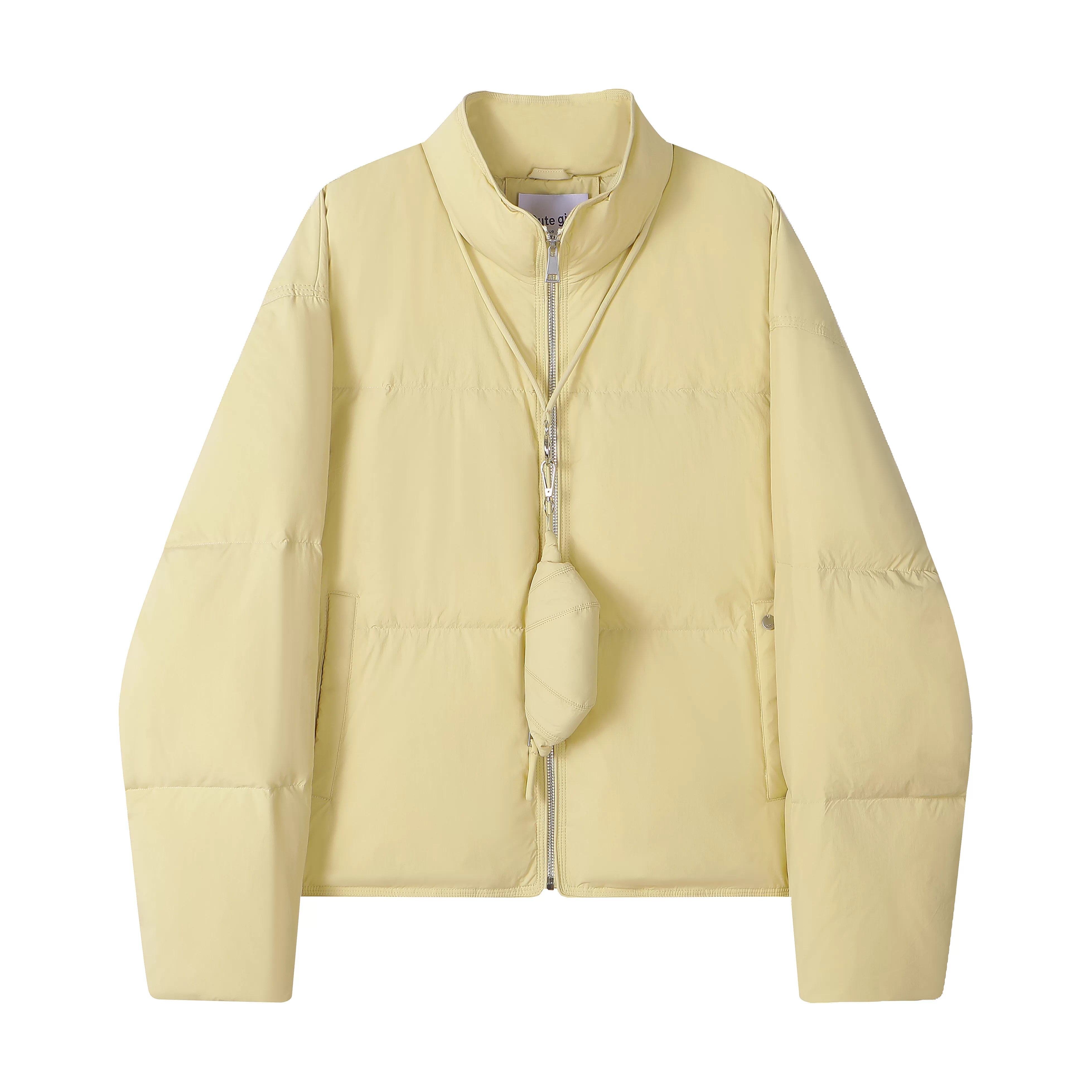 Áo khoác phao cổ đứng kiểu Hàn Quốc màu vàng trắng có khóa kéo dành cho nữ mùa đông, áo khoác phao ấm áp thường ngày