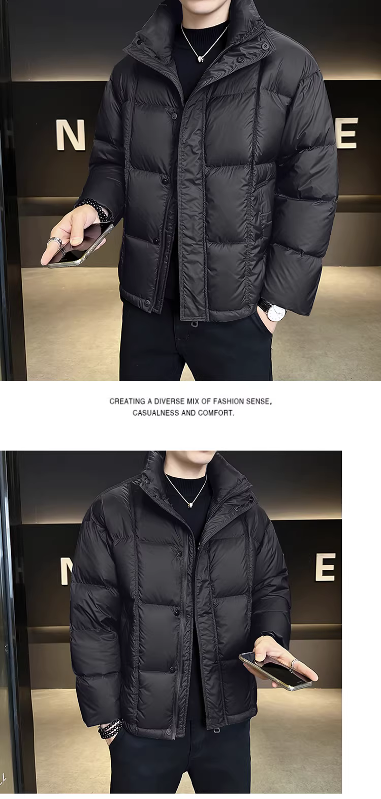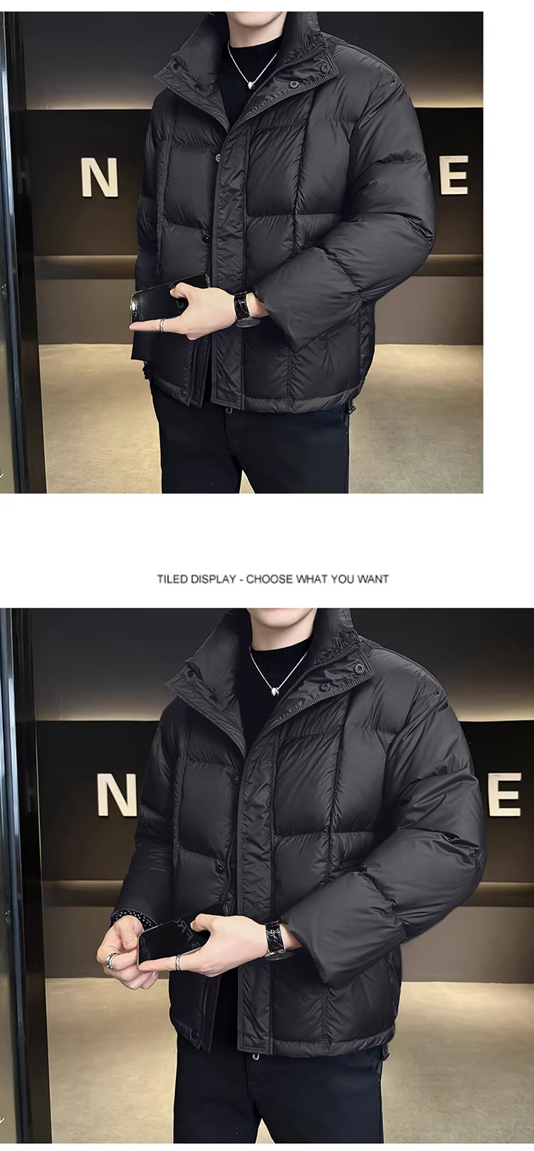 Áo khoác phao cổ đứng Puff Cloud dành cho nam, kiểu mới mùa đông 2025, áo khoác phao ngắn dày dặn, dáng rộng.