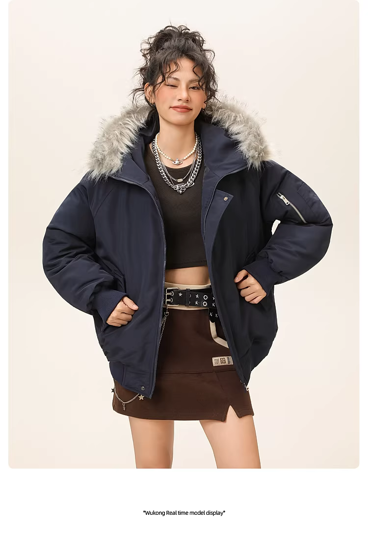 - Áo khoác phao dày có mũ trùm đầu và cổ lông mùa đông của Wukong dành cho nam, kiểu dáng Mỹ, thương hiệu thời trang, áo khoác cotton ấm áp dành cho cặp đôi.