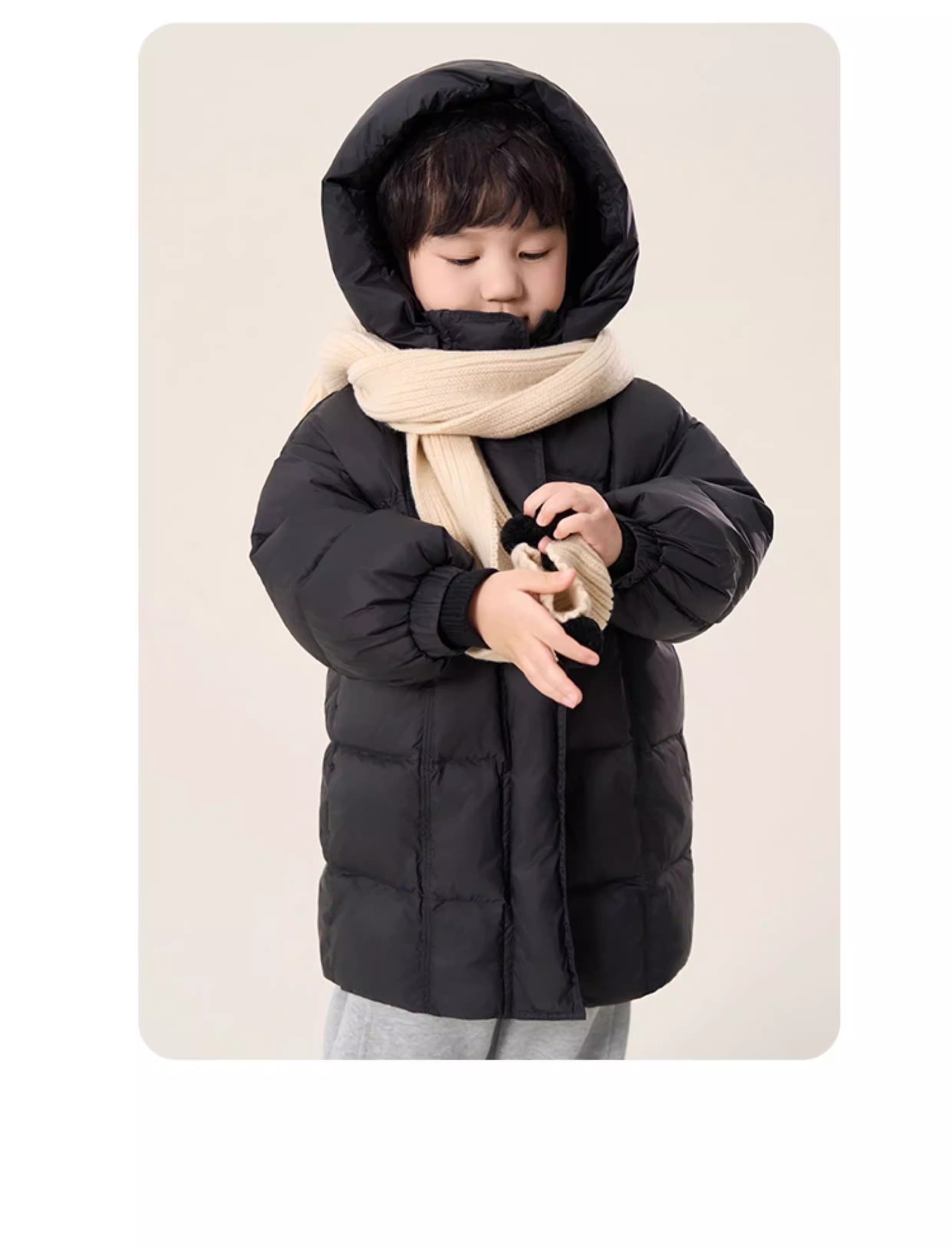 Áo khoác phao INSbobo cho bé trai mùa đông 2025 màu đen vàng, áo khoác phao mùa đông cho bé trai, áo khoác phao trẻ em chống thấm ba lớp