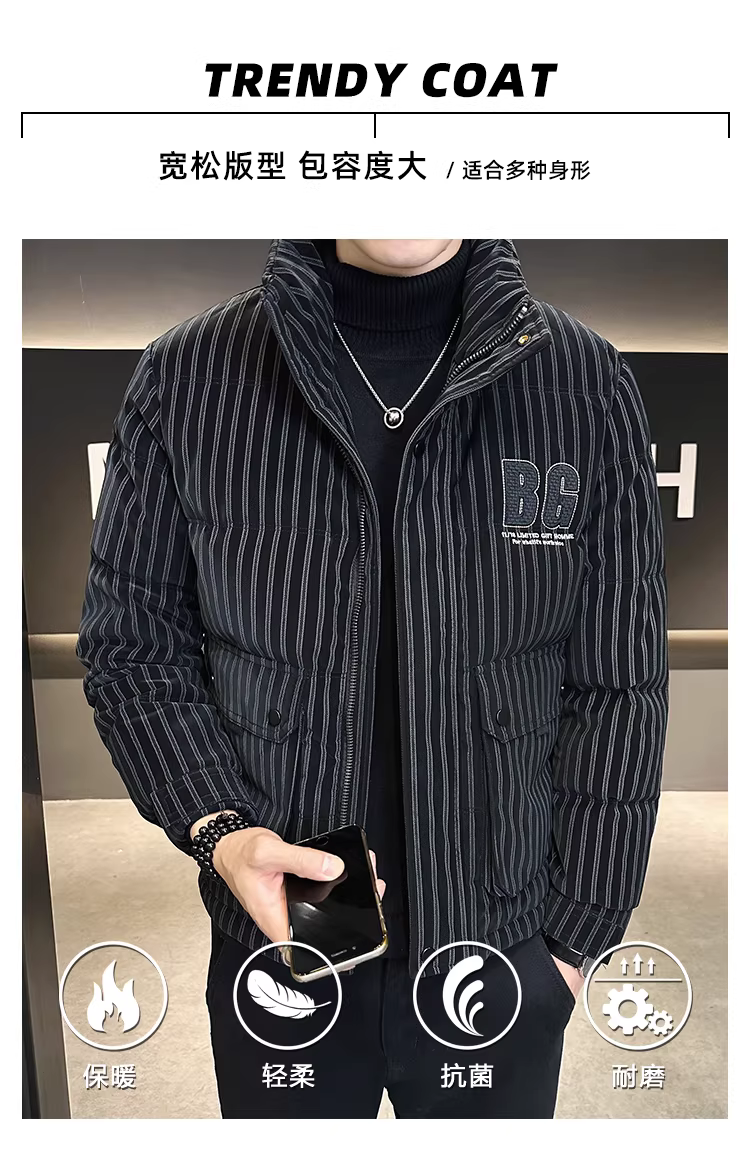 - Áo khoác phao nam chất liệu giả da PU, kiểu dáng ôm body ngắn, dày dặn, giữ ấm cao cấp, mùa đông 2024, mới