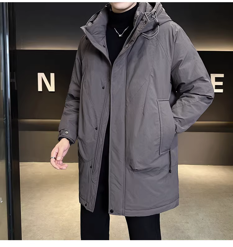 - Áo khoác phao nam dài trung bình, kiểu mới mùa đông 2025, dày dặn, ấm áp, kiểu dáng áo khoác công sở cao cấp