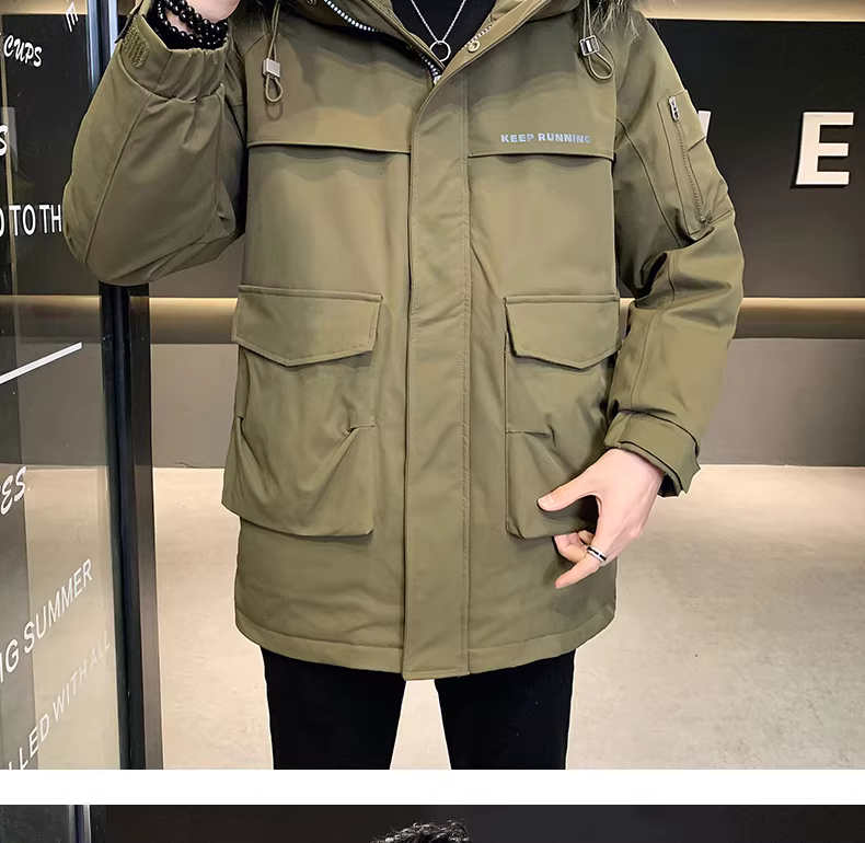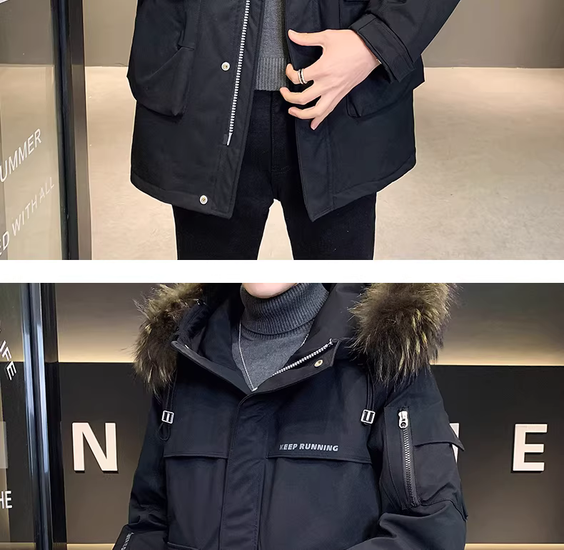 - Áo khoác phao nam mùa đông 2024 kiểu mới cao cấp thời trang và lịch lãm, dày dặn, ấm áp, có cổ lông lớn và mũ trùm đầu.