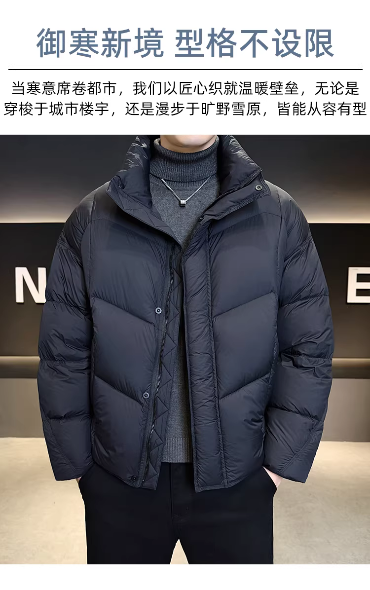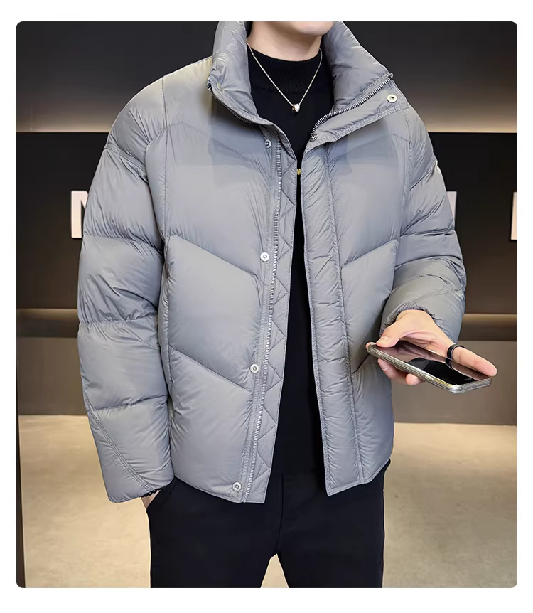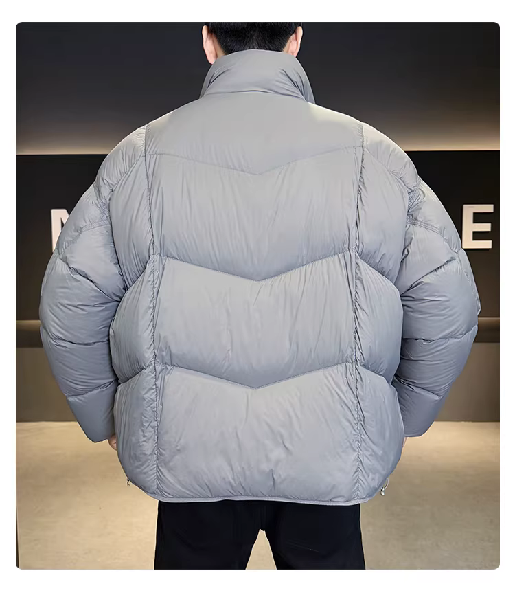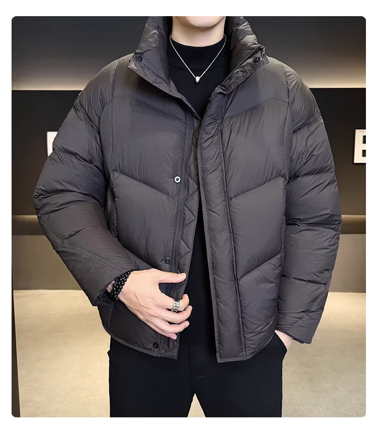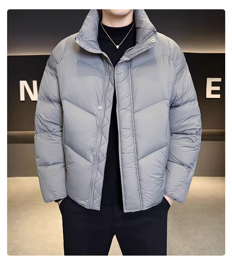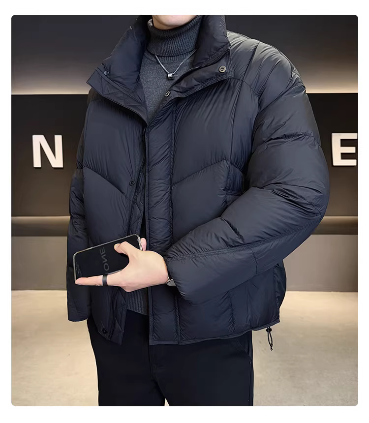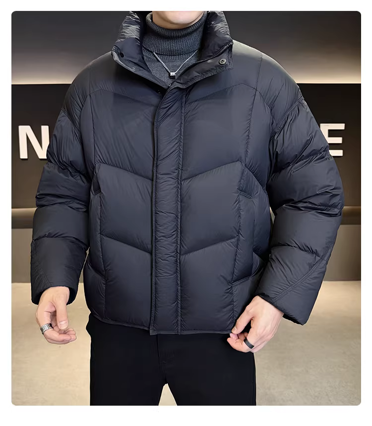 Áo khoác phao nam mùa đông 2025 dáng rộng nhẹ, cổ đứng, tiêu chuẩn quốc gia, độ phồng 90