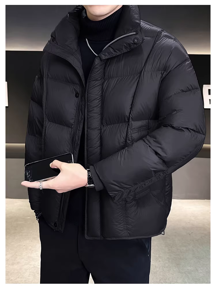 - Áo khoác phao nam tiêu chuẩn quốc gia 90% lông vũ, kiểu mới mùa đông 2025, dáng rộng, ngắn, dày dặn.