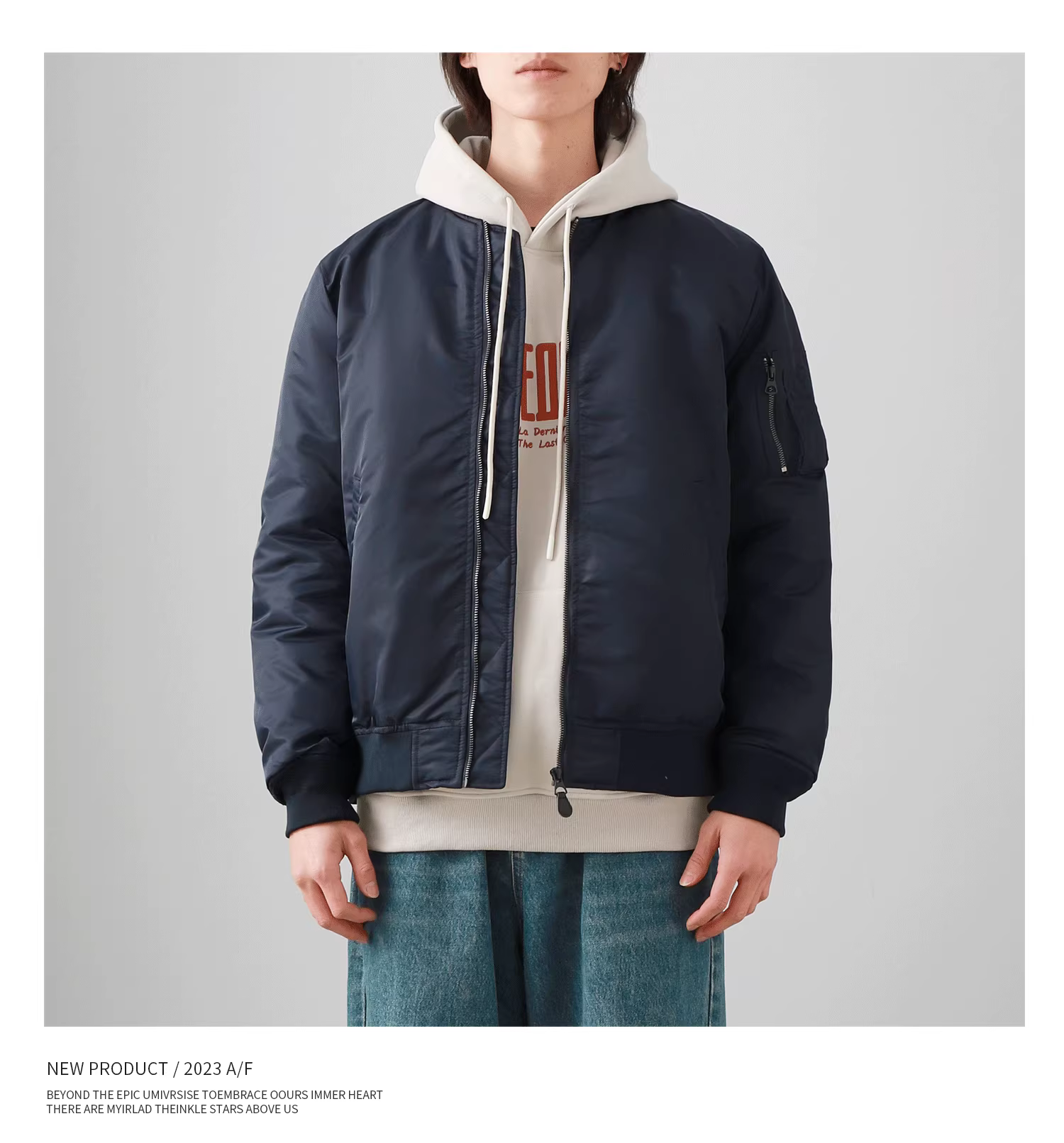 Áo khoác phi công MA-1 kiểu Mỹ thuần túy dành cho nam, quần áo cotton ấm áp vừa vặn mùa đông mới, áo khoác bóng chày cổ điển, hợp thời trang.