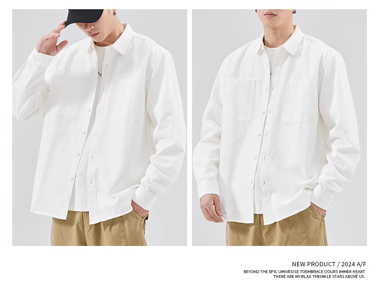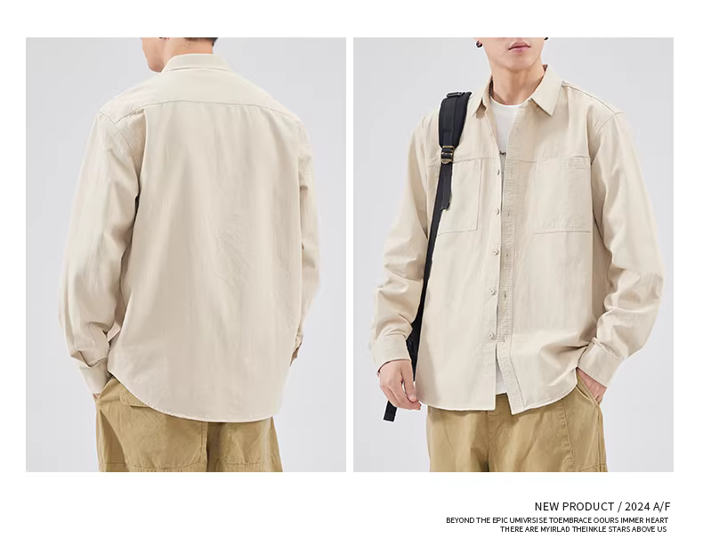 - Áo khoác sơ mi công sở hạng nặng dành cho nam, mùa xuân và mùa thu, chất liệu cotton nguyên chất, phong cách cổ điển Mỹ, cao cấp, mát mẻ và sành điệu, cổ bẻ, áo sơ mi dài tay.