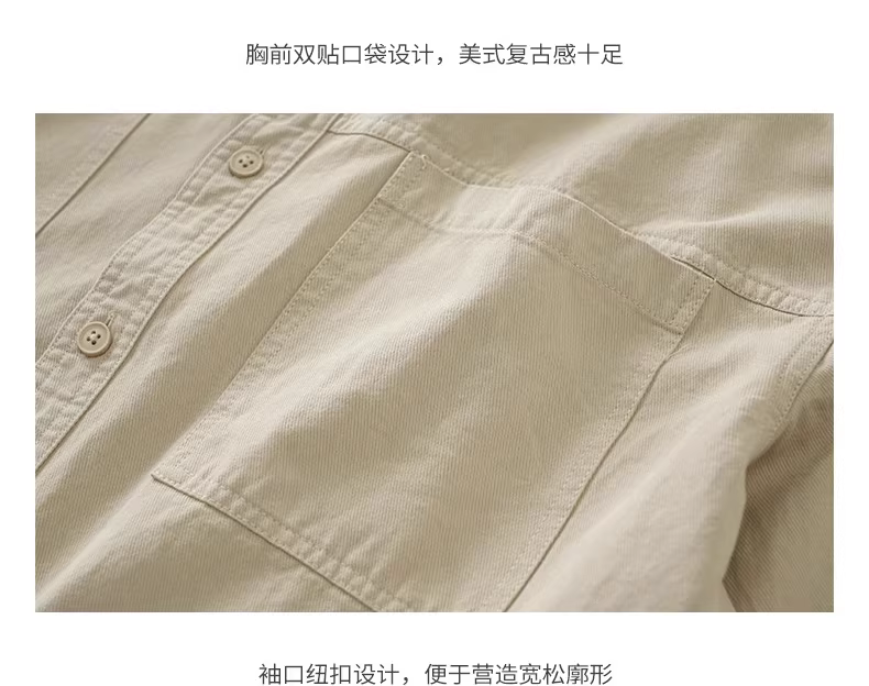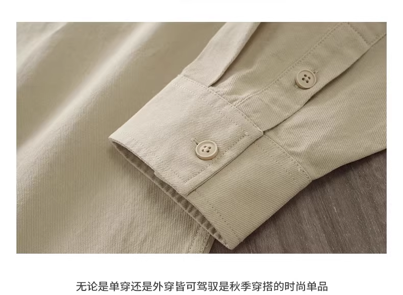 Áo khoác sơ mi công sở hạng nặng dành cho nam, mùa xuân và mùa thu, chất liệu cotton nguyên chất, phong cách cổ điển Mỹ, cao cấp, mát mẻ và sành điệu, cổ bẻ, áo sơ mi dài tay.