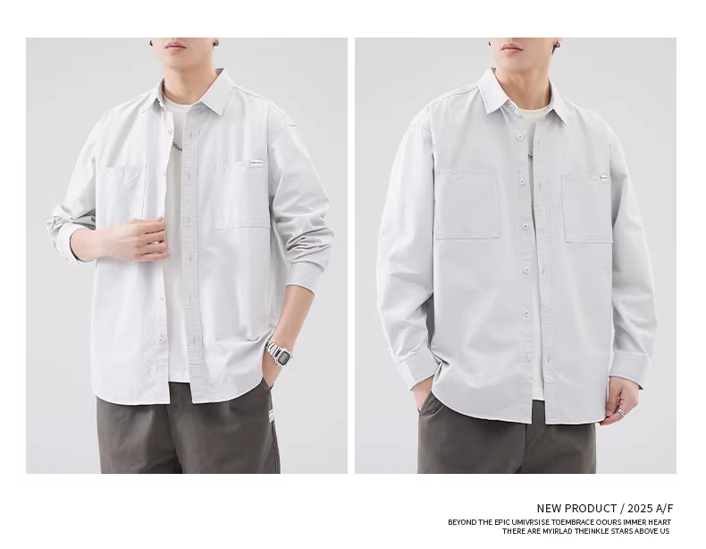 - Áo khoác sơ mi nam 400G, chất liệu dày dặn, mùa xuân thu, cổ trụ, kiểu Mỹ, cao cấp, chất liệu cotton nguyên chất, tay dài, phong cách thường ngày