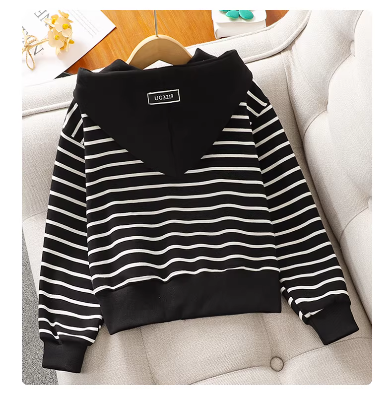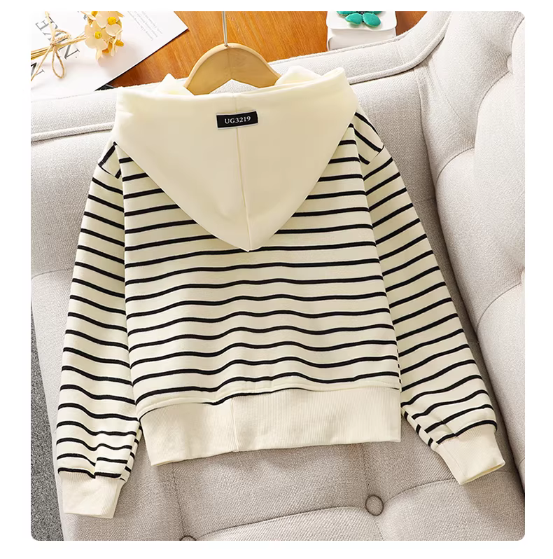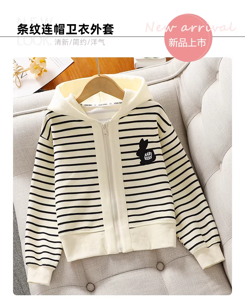 - Áo khoác sọc mùa thu cho bé gái, áo hoodie rộng rãi mới năm 2025, quần áo mùa thu cho trẻ em, áo cardigan thường ngày