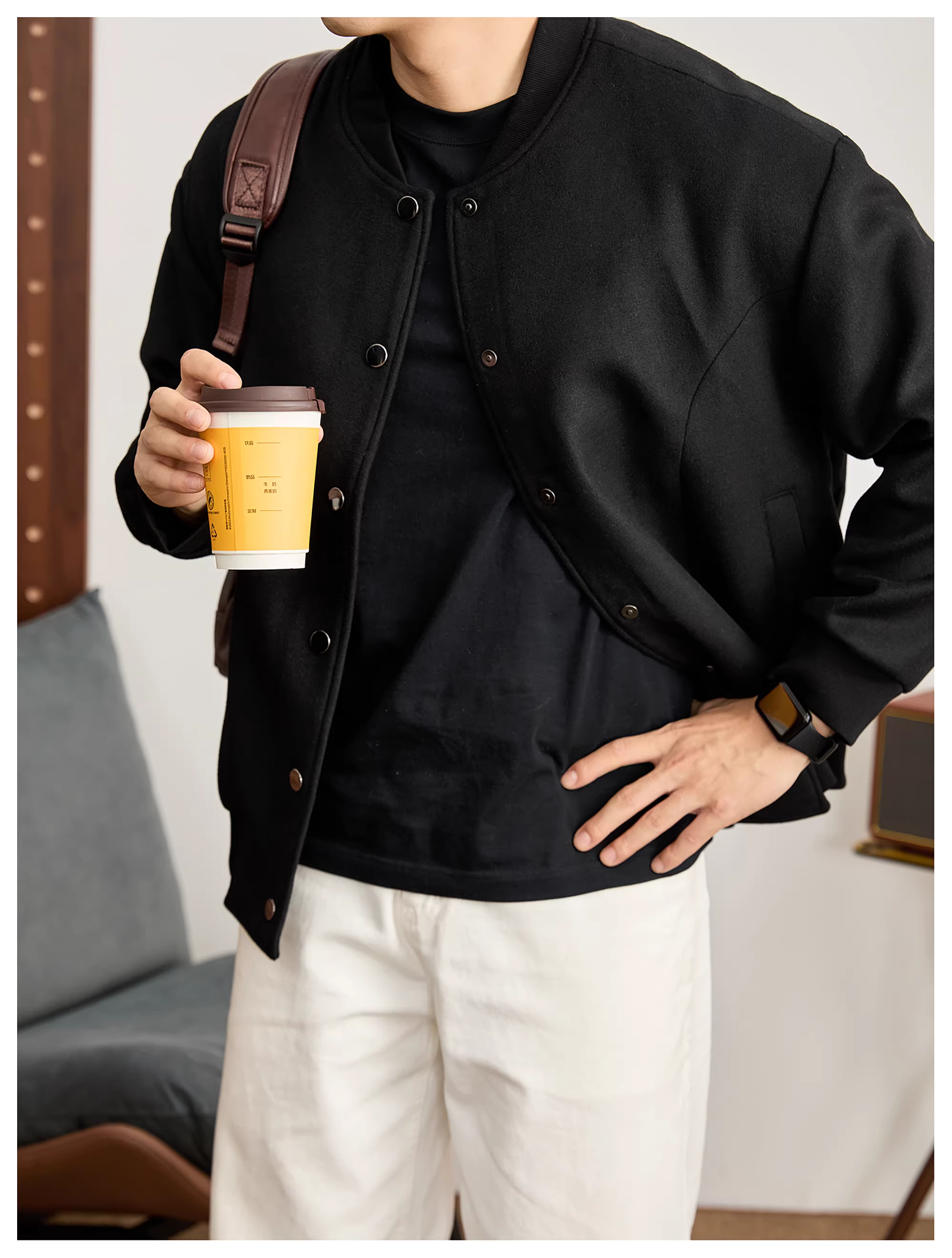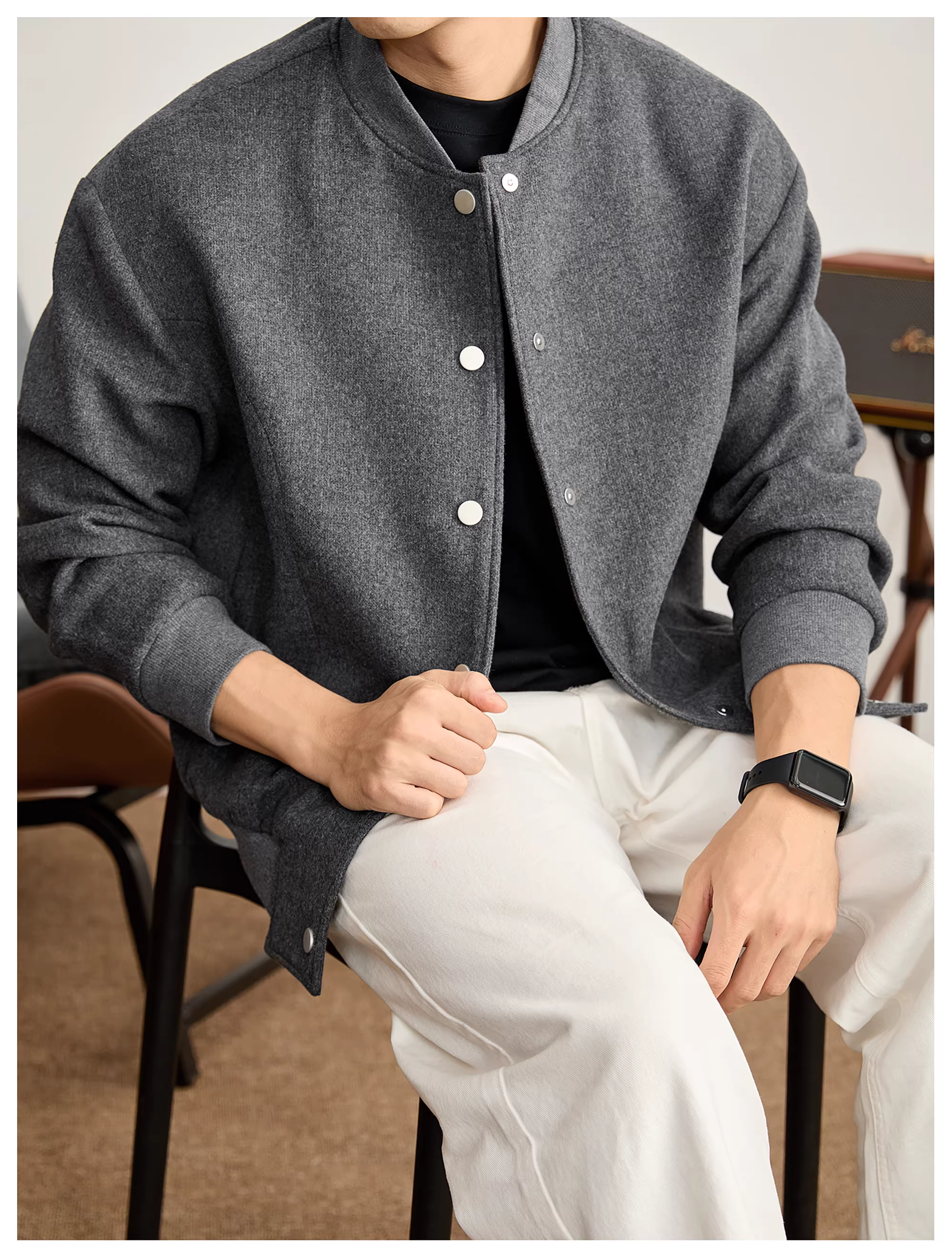 - Áo khoác tay xếp ly sang trọng và thanh lịch LUUD dành cho nam giới, chất liệu áo khoác bóng chày pha len cừu ấm áp