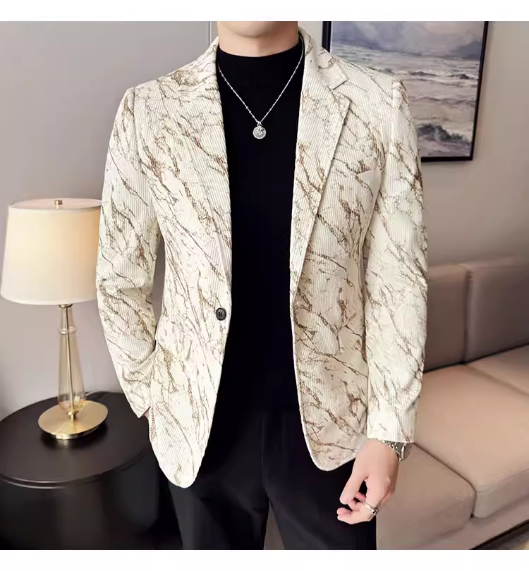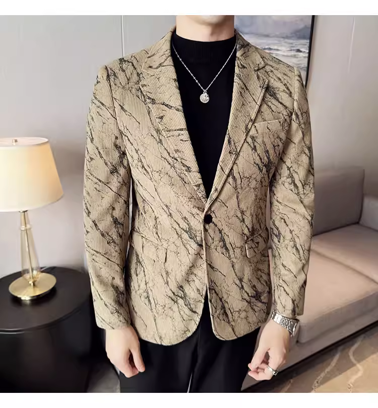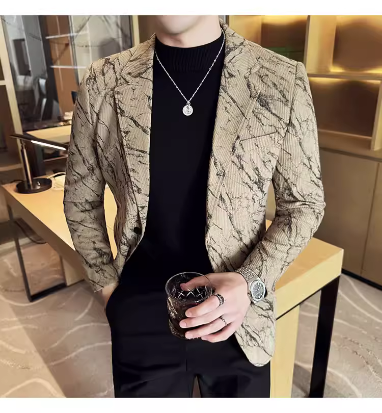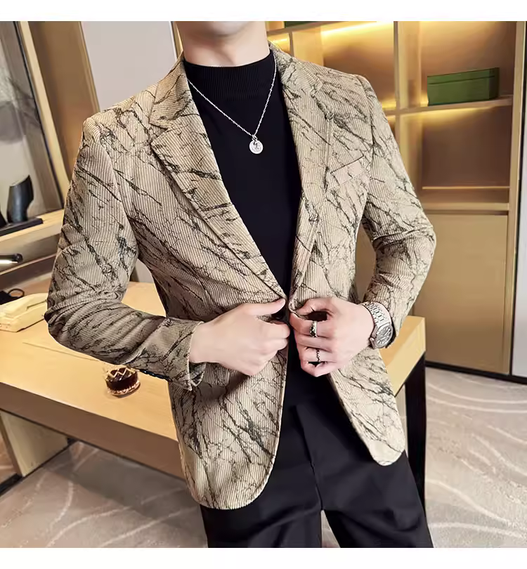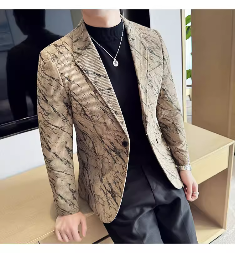 Áo khoác vải nhung kẻ cho nam, kiểu dáng dày dặn mùa thu đông, thời trang, hợp xu hướng, ôm dáng, đẹp trai, lịch sự, phù hợp với công sở, vest cao cấp