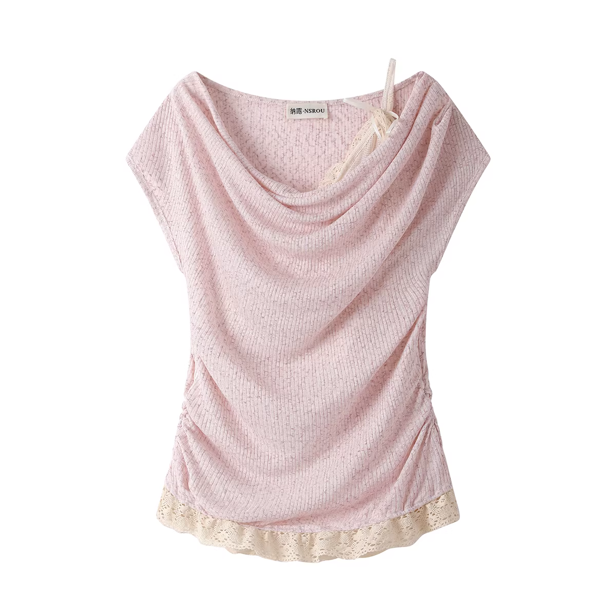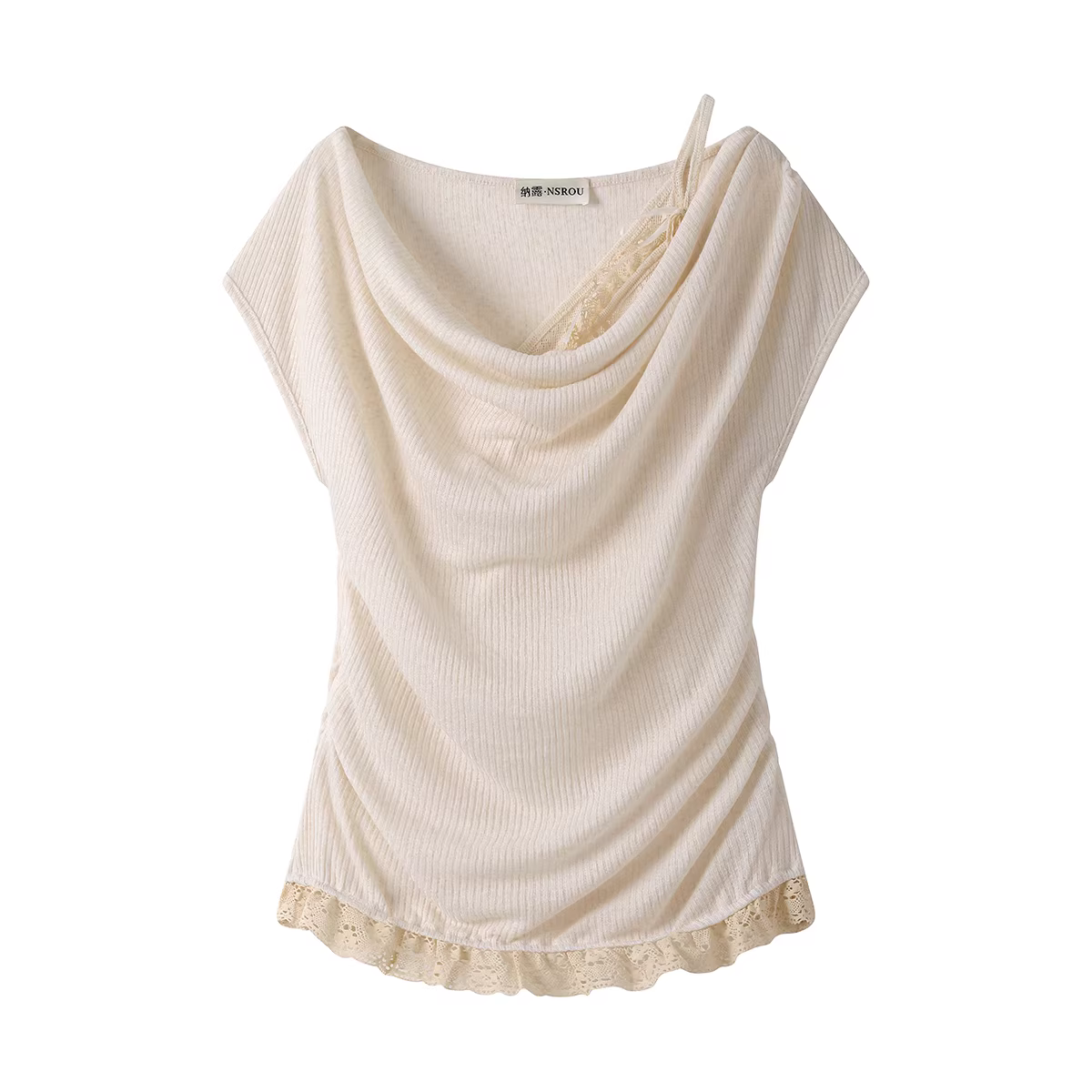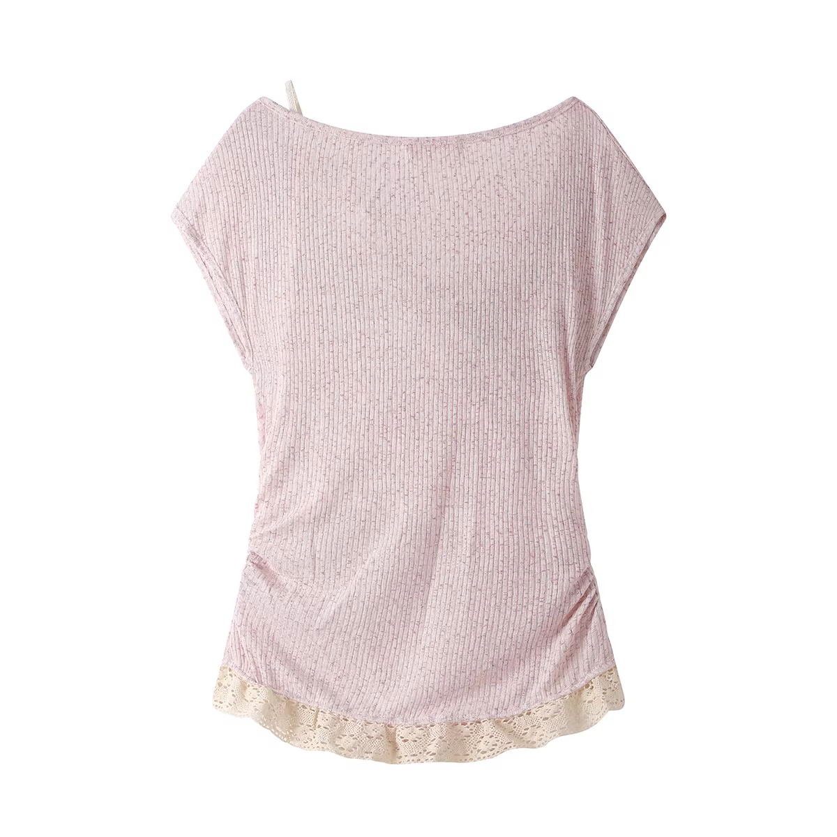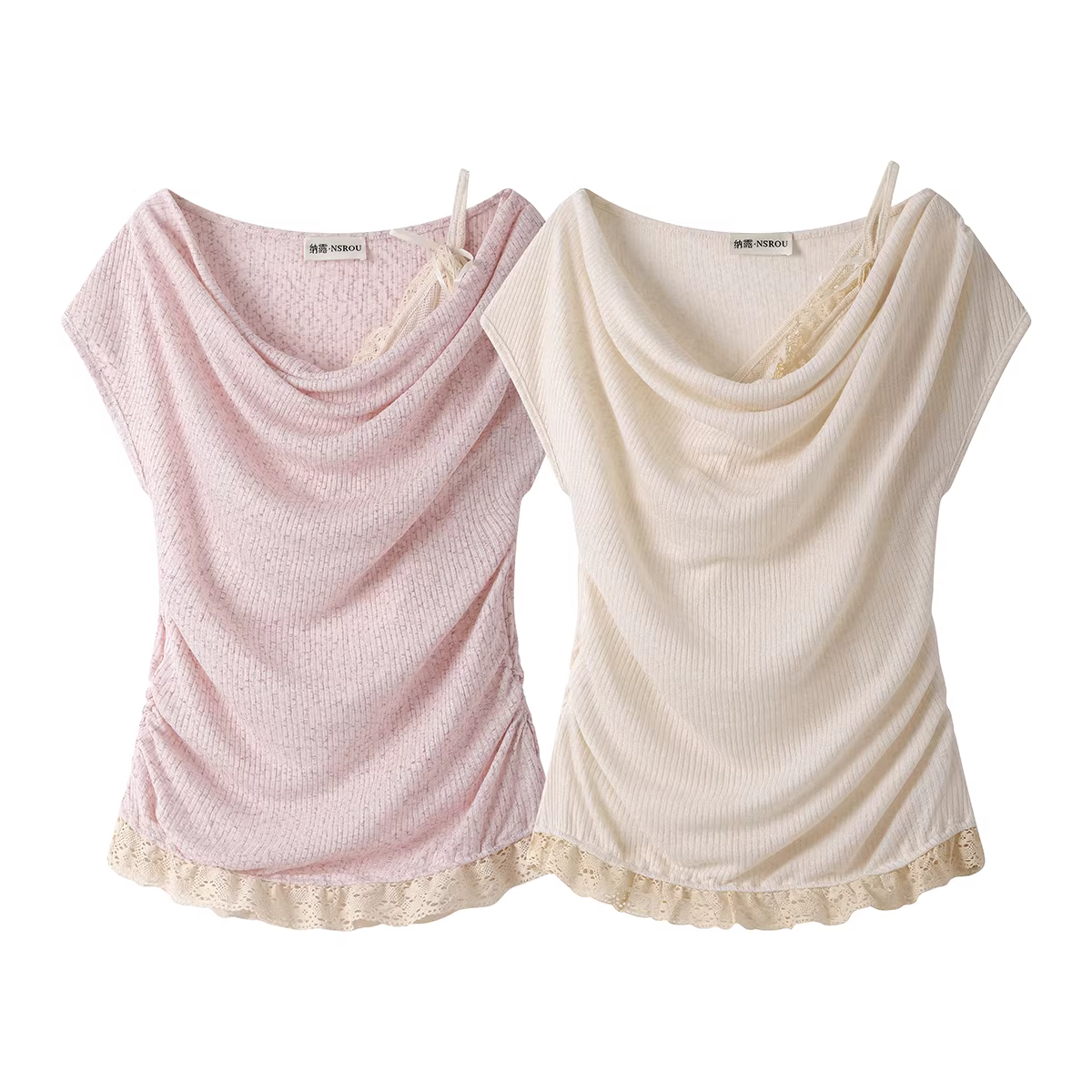 Áo kiểu bohemian nhẹ nhàng và thuần khiết dành cho nữ, áo thun giả hai mảnh phối ren mùa hè