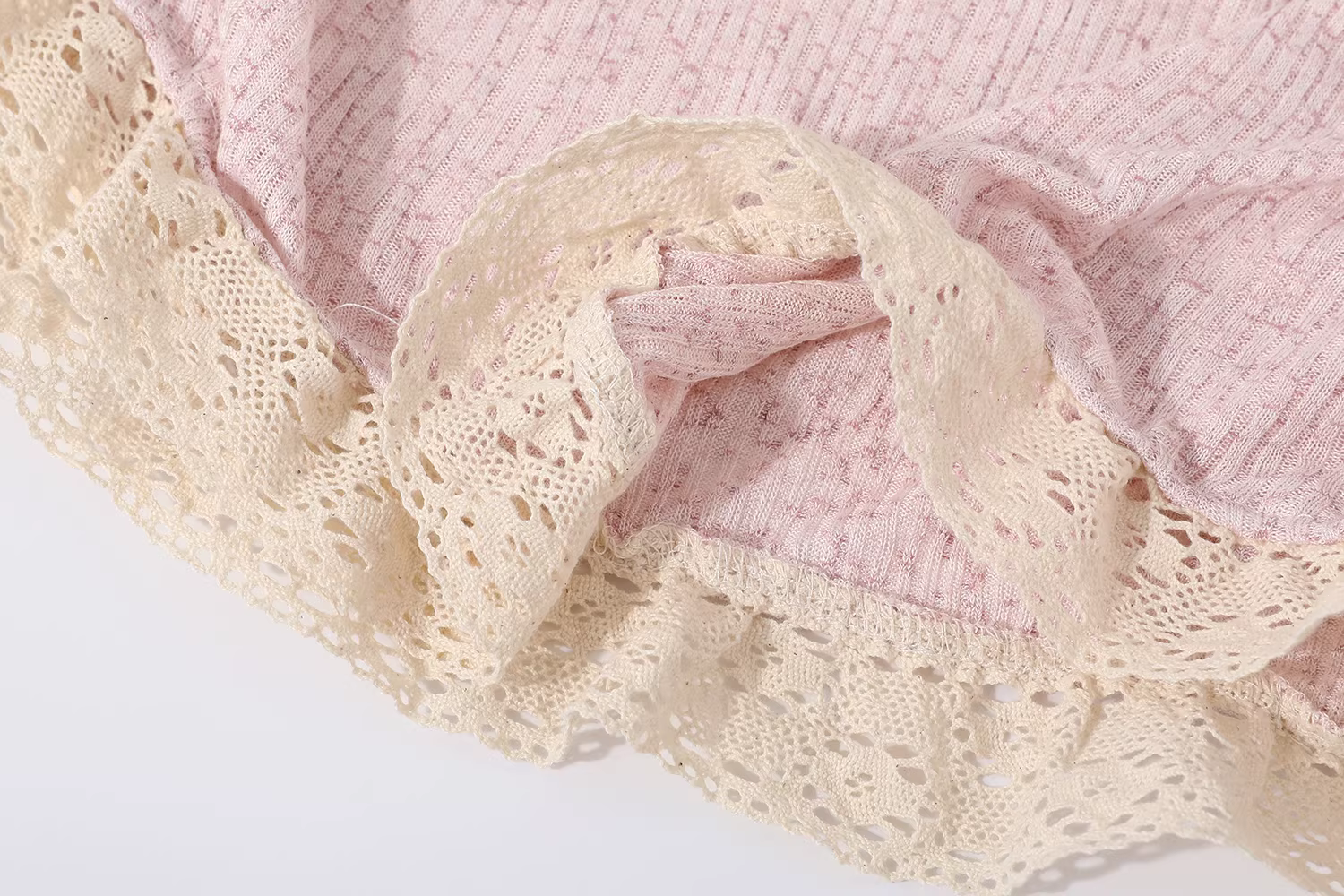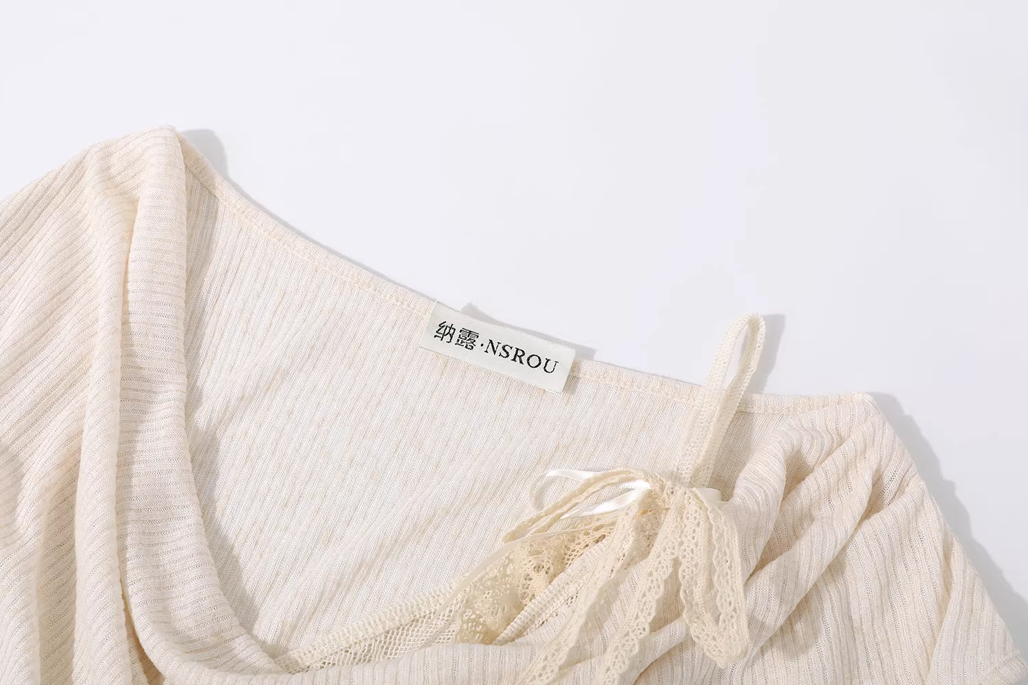 - Áo kiểu bohemian nhẹ nhàng và thuần khiết dành cho nữ, áo thun giả hai mảnh phối ren mùa hè