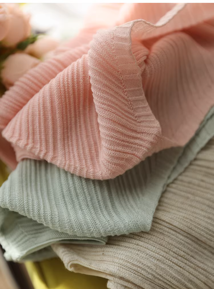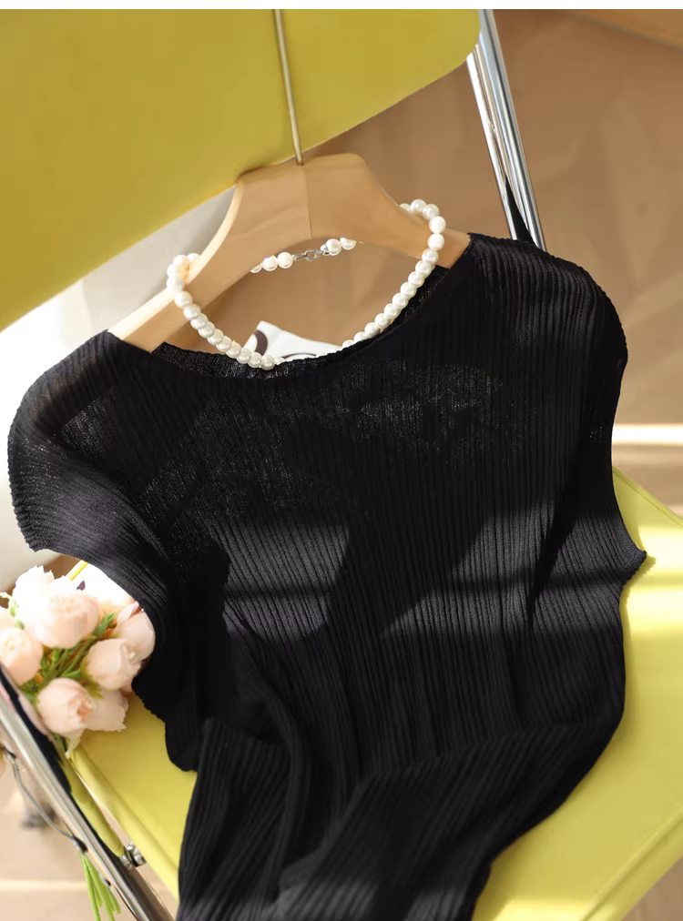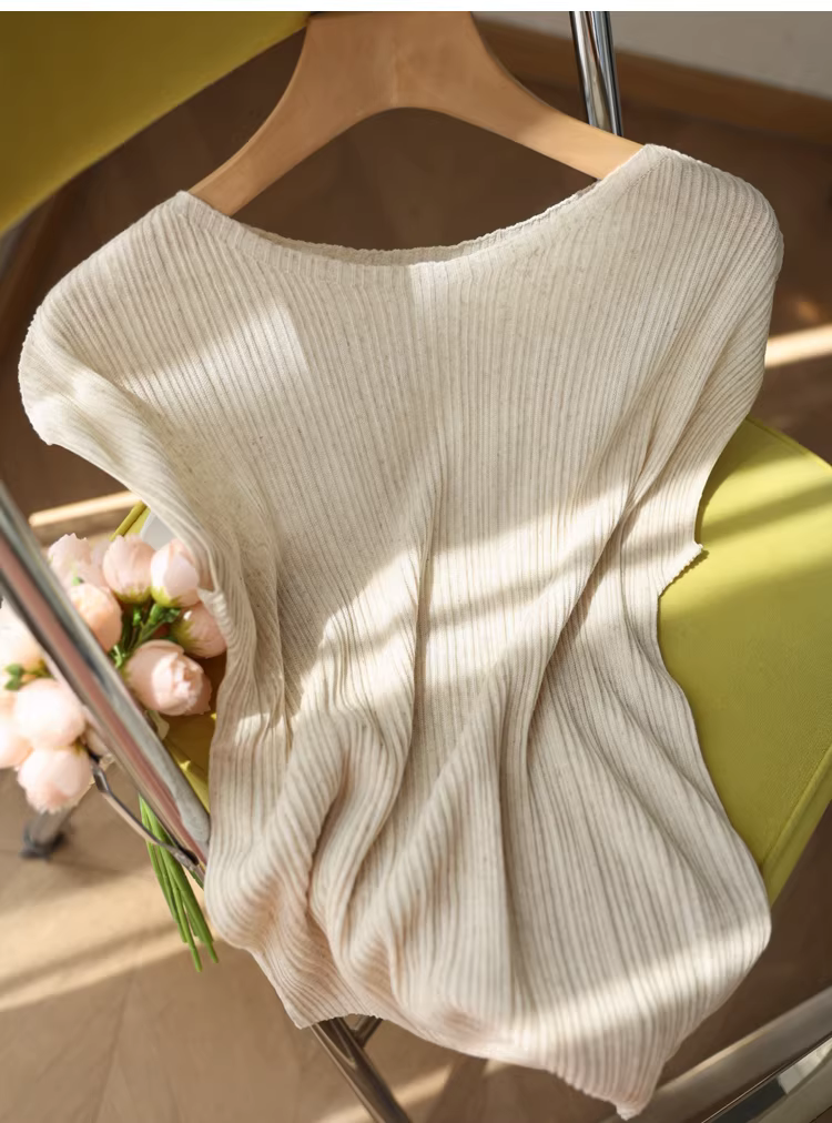 Áo kiểu nữ chất liệu linen lyocell, thiết kế xếp ly ba chiều, dáng ôm thanh lịch, kiểu trễ vai, chất liệu dệt kim gân, mỏng nhẹ, thích hợp cho mùa hè.