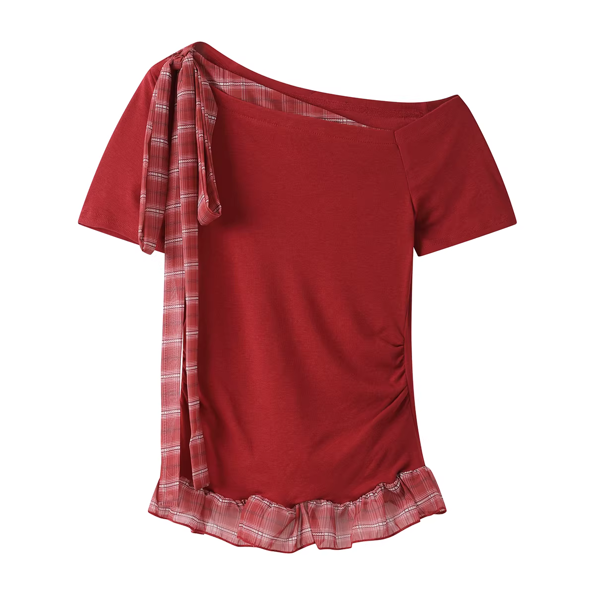 - Áo kiểu Pháp phối màu thời trang, tay ngắn, trễ vai, kiểu dáng đẹp dành cho nữ, áo thun bó eo mùa hè