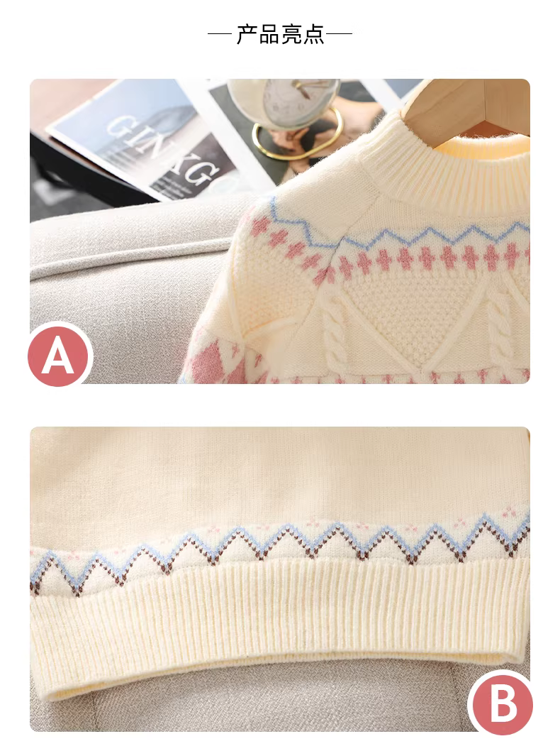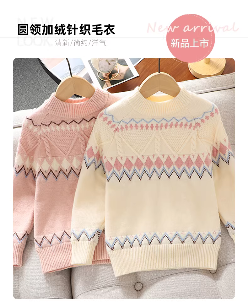 - Áo len bé gái thu đông 2025 kiểu dáng mới thời trang, áo lót dày dặn lót lông cừu cho bé gái lớn, áo mùa đông