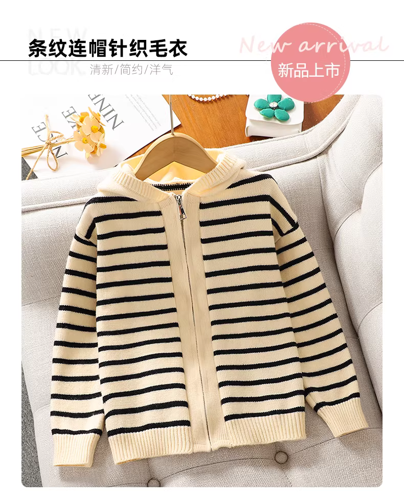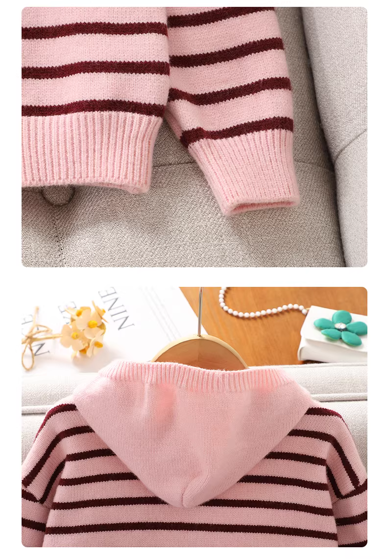 - Áo len bé gái thu đông 2025 kiểu mới áo khoác cardigan sọc có mũ cho bé gái áo len dệt kim dài tay xuân thu trẻ em