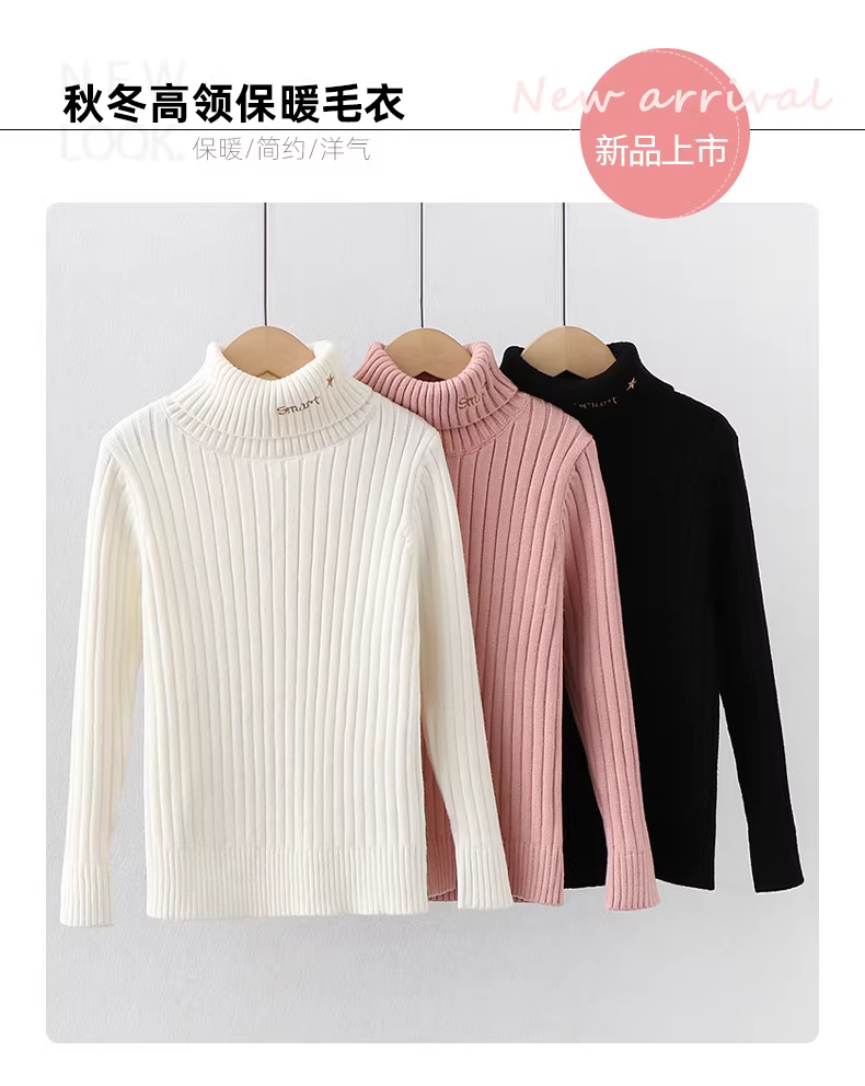 - Áo len bé gái thu đông 2025 kiểu mới, áo len chui đầu trẻ em thời trang, áo len cổ lọ lót lông cừu cho bé lớn