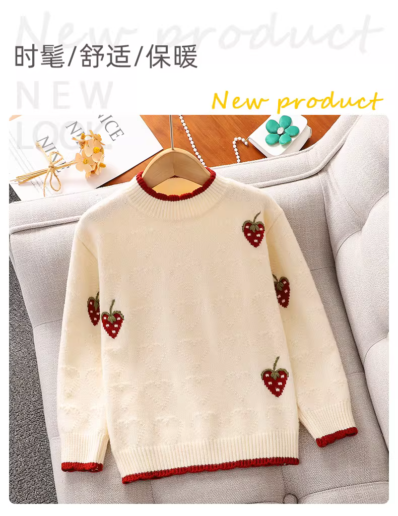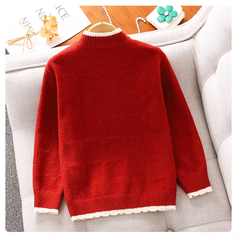 - Áo len bé gái thu đông 2025 kiểu mới phong cách Hàn Quốc dày dặn áo lót trẻ em cổ tròn dệt kim mùa đông