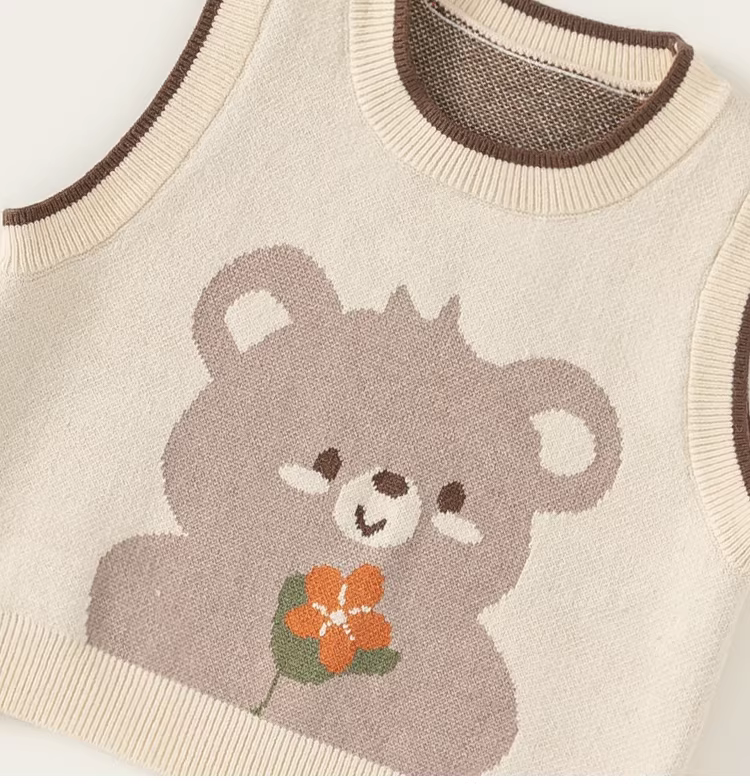 Áo len bé INSbobo, áo gile thu đông 2025, kiểu thu mới, áo bé gái hình gấu, áo bé trai kiểu pullover