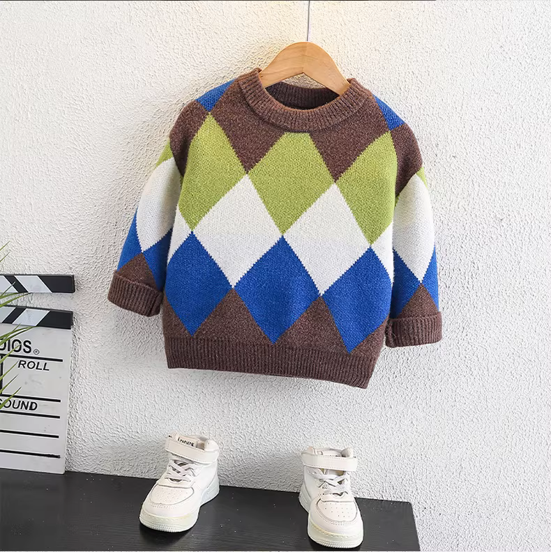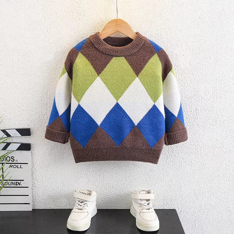 - Áo len bé trai thu đông 2025, quần áo mùa đông trẻ em mới, áo len dày dặn, áo len dệt kim, áo lót mùa đông bé trai thời trang