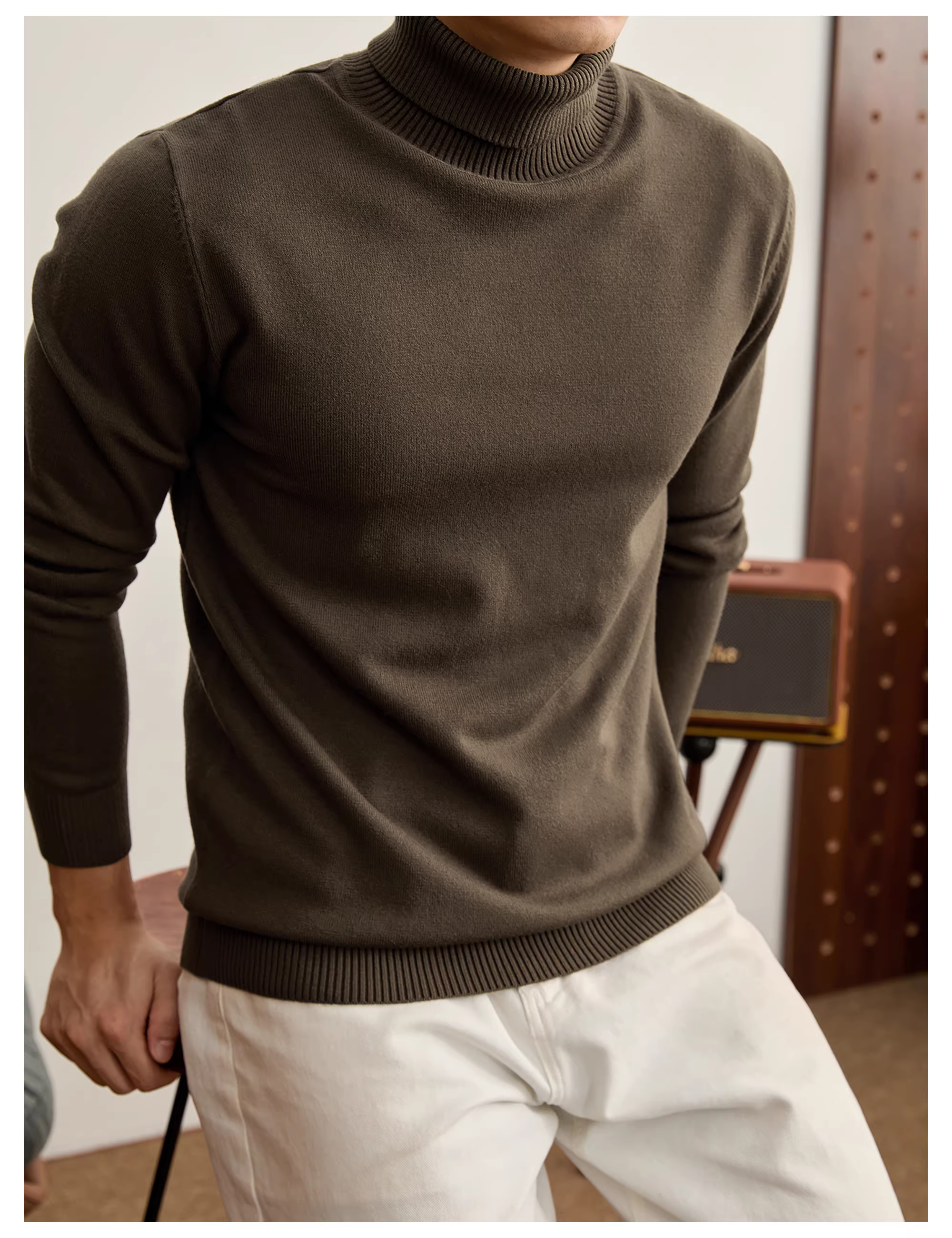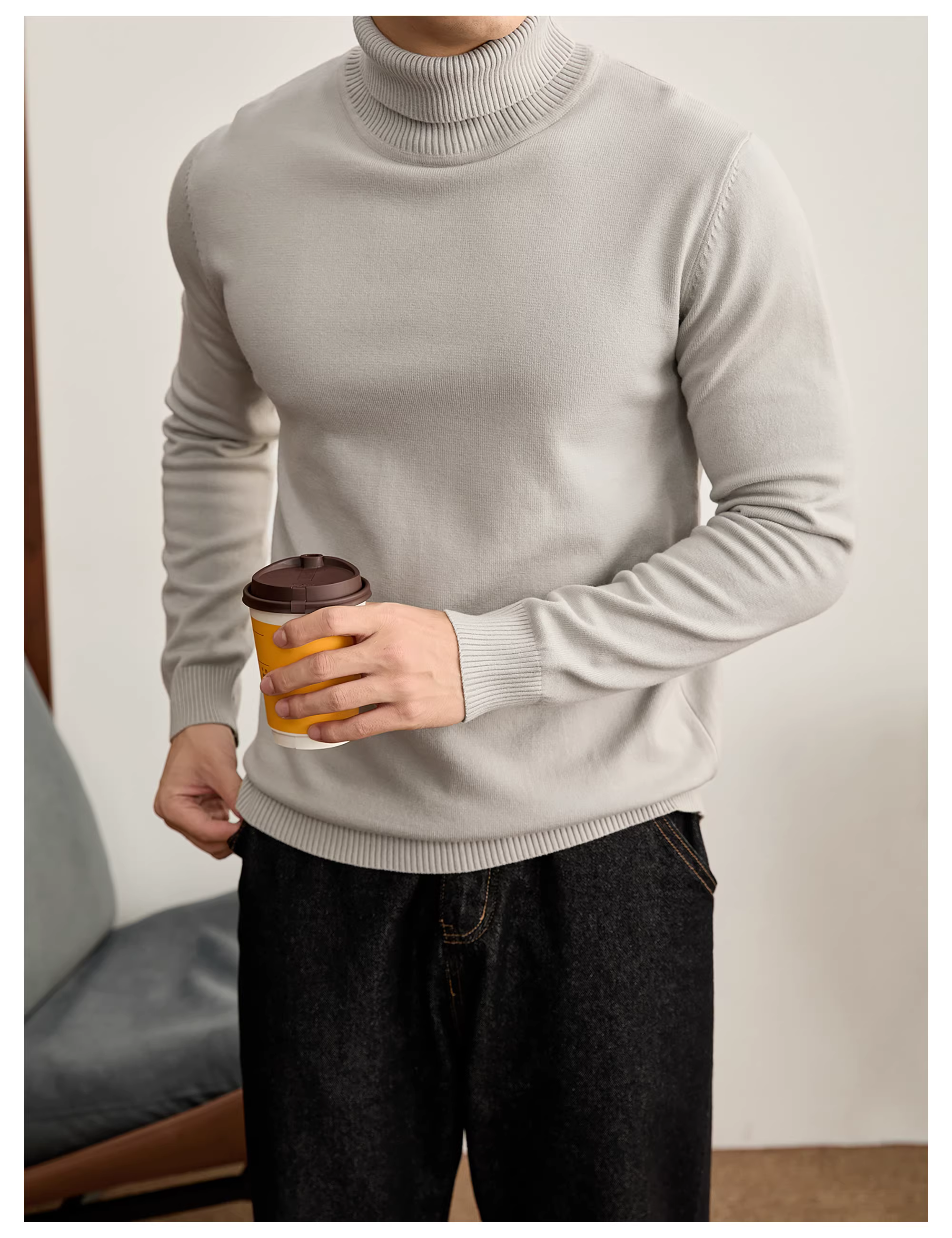 - Áo len cao cấp LUUD màu đen, kiểu cổ lọ, chất liệu modal, sợi core-spun, giữ ấm cho nam, mùa thu đông
