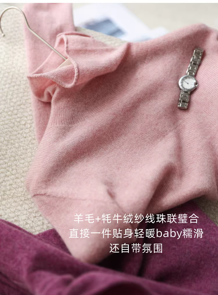 羊毛牦牛绒无缝荃成型高领针织上衣