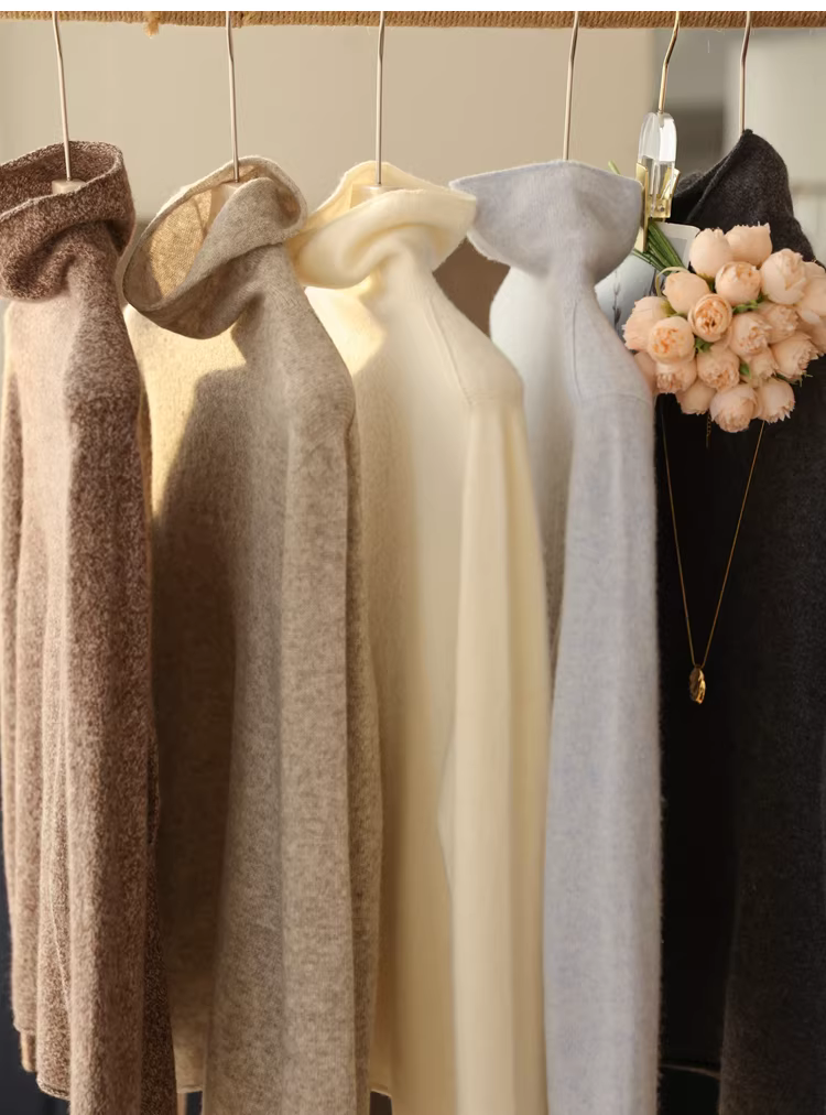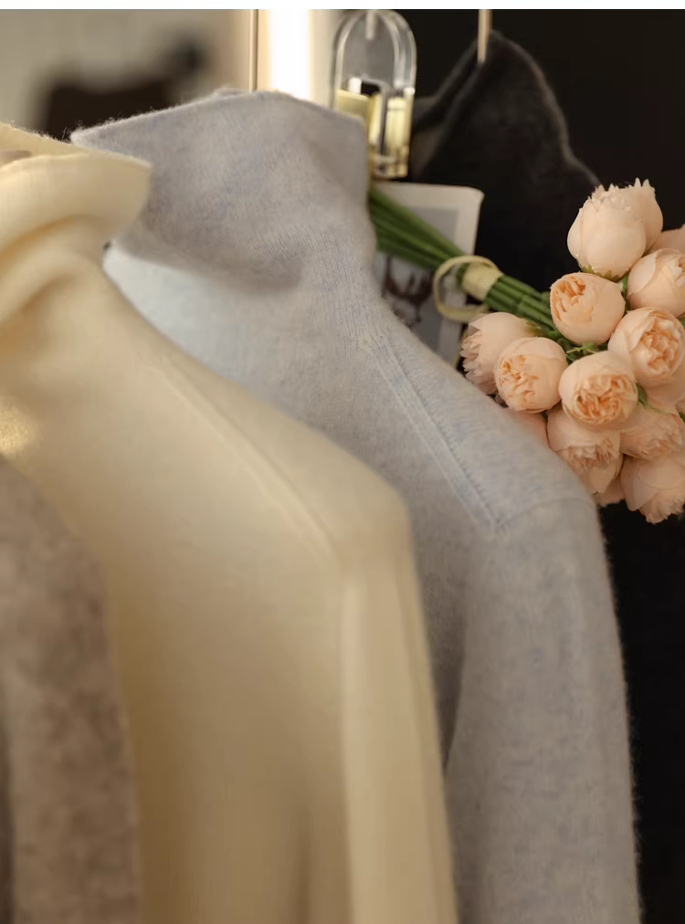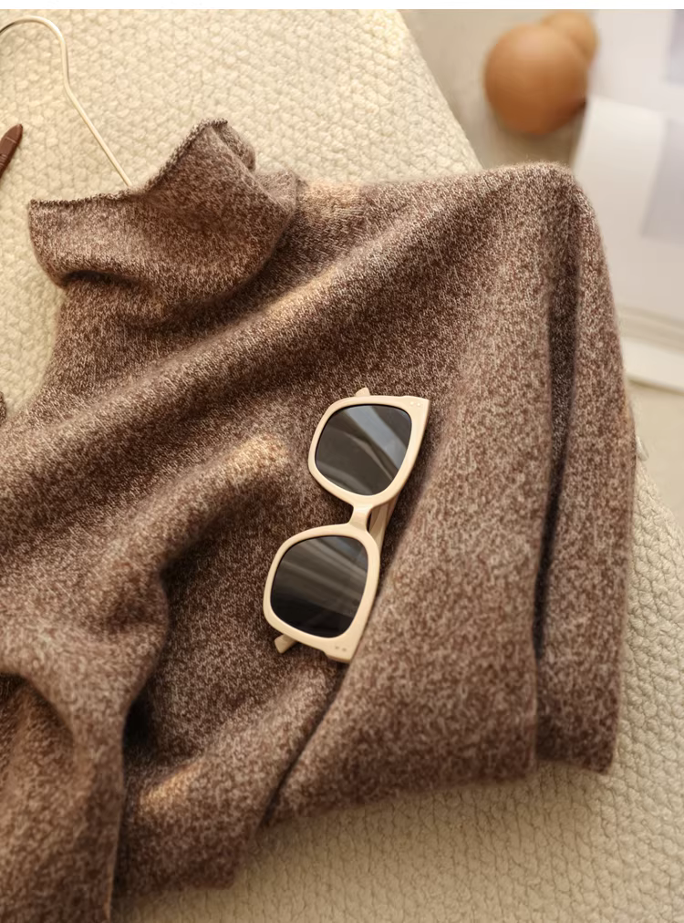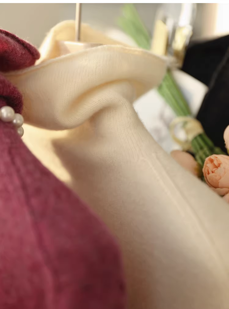 - Áo len cao cổ dệt liền mạch bằng len yak 13,5% và len cừu 86,5% của Tây Tạng, dành cho nữ, mùa thu đông.