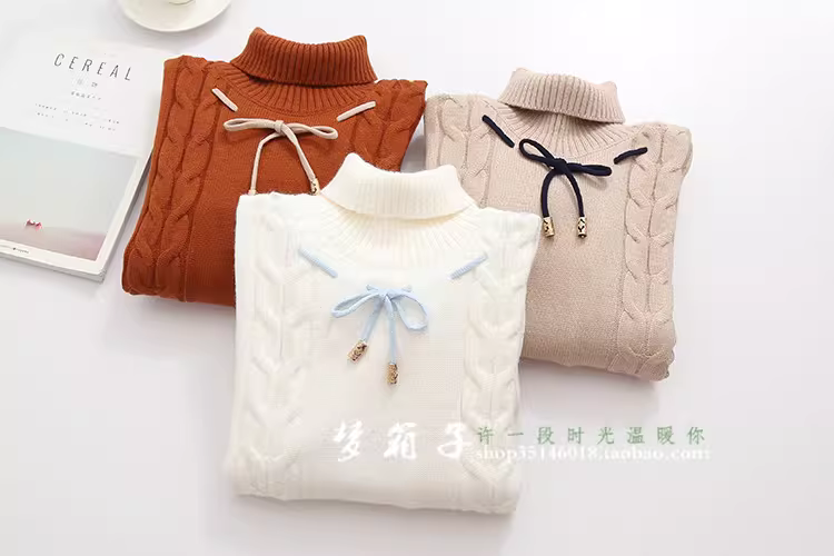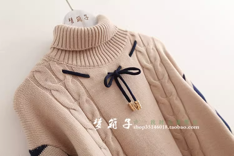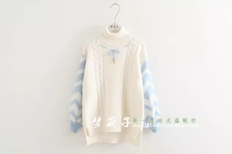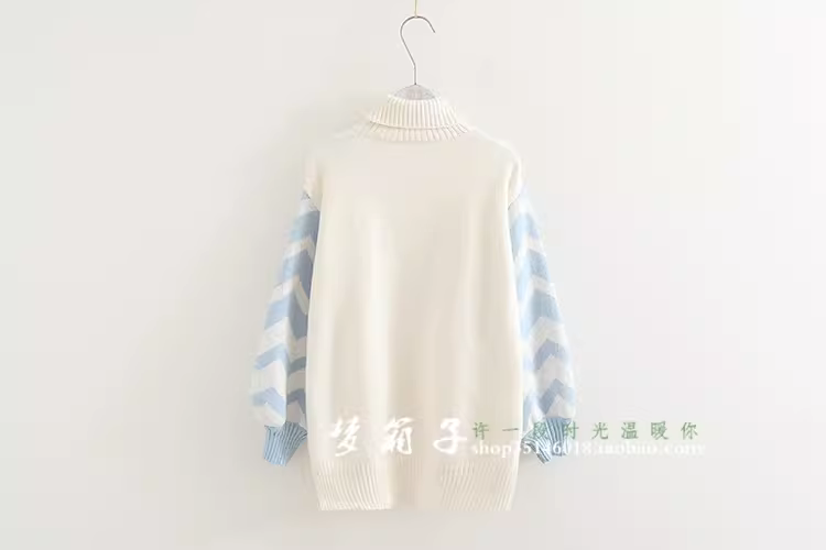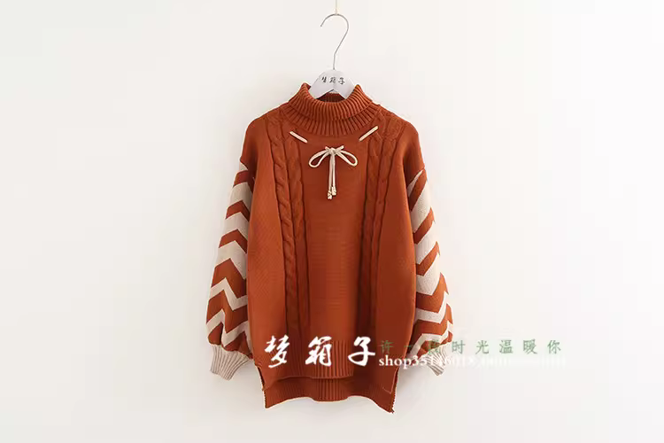 - Áo len cao cổ tay đèn lồng phối màu Xuân 2024 Dream Box dành cho nữ, chất liệu dệt kim xoắn ốc, kiểu dáng dễ thương