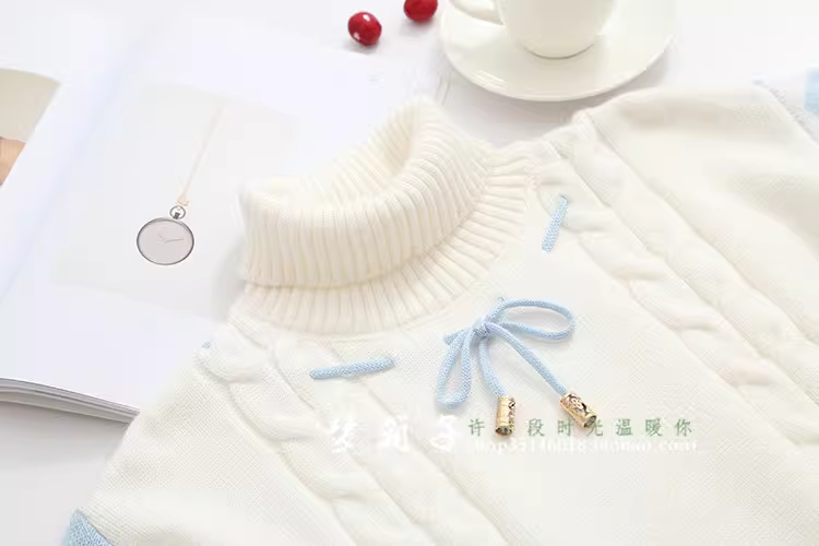 绞股麻花,拼色灯笼袖,系带蝴蝶结,上身萌萌哒