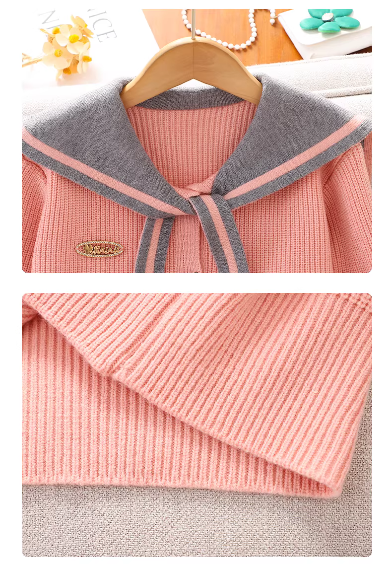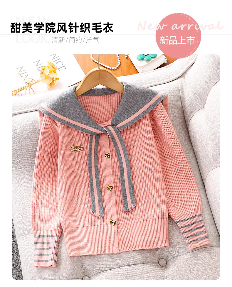 - Áo len cardigan bé gái xuân 2025 mẫu mới áo thun dệt kim phong cách preppy cho bé gái mùa xuân thu áo cổ thủy thủ