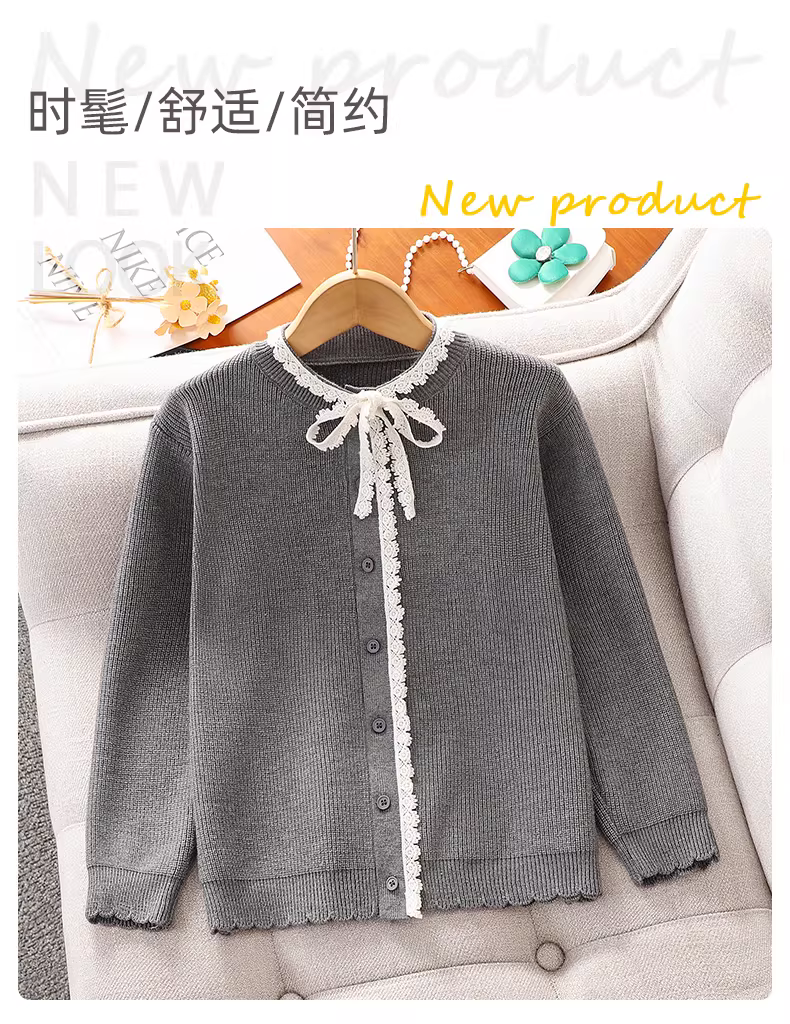 - Áo len cardigan bé gái xuân thu kiểu mới 2025 phong cách Hàn Quốc áo khoác ren trẻ em áo len dệt kim thường ngày mặc mùa thu